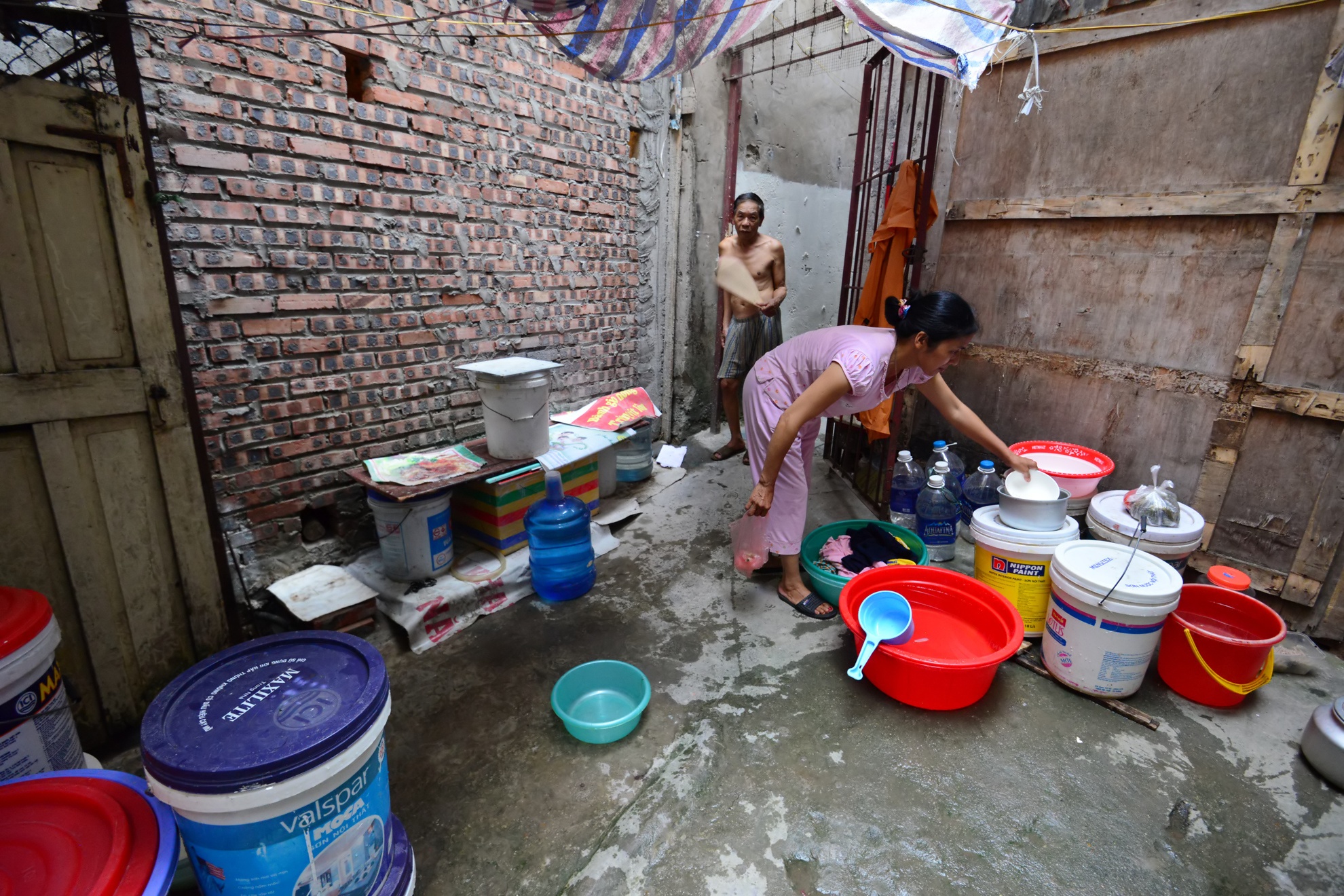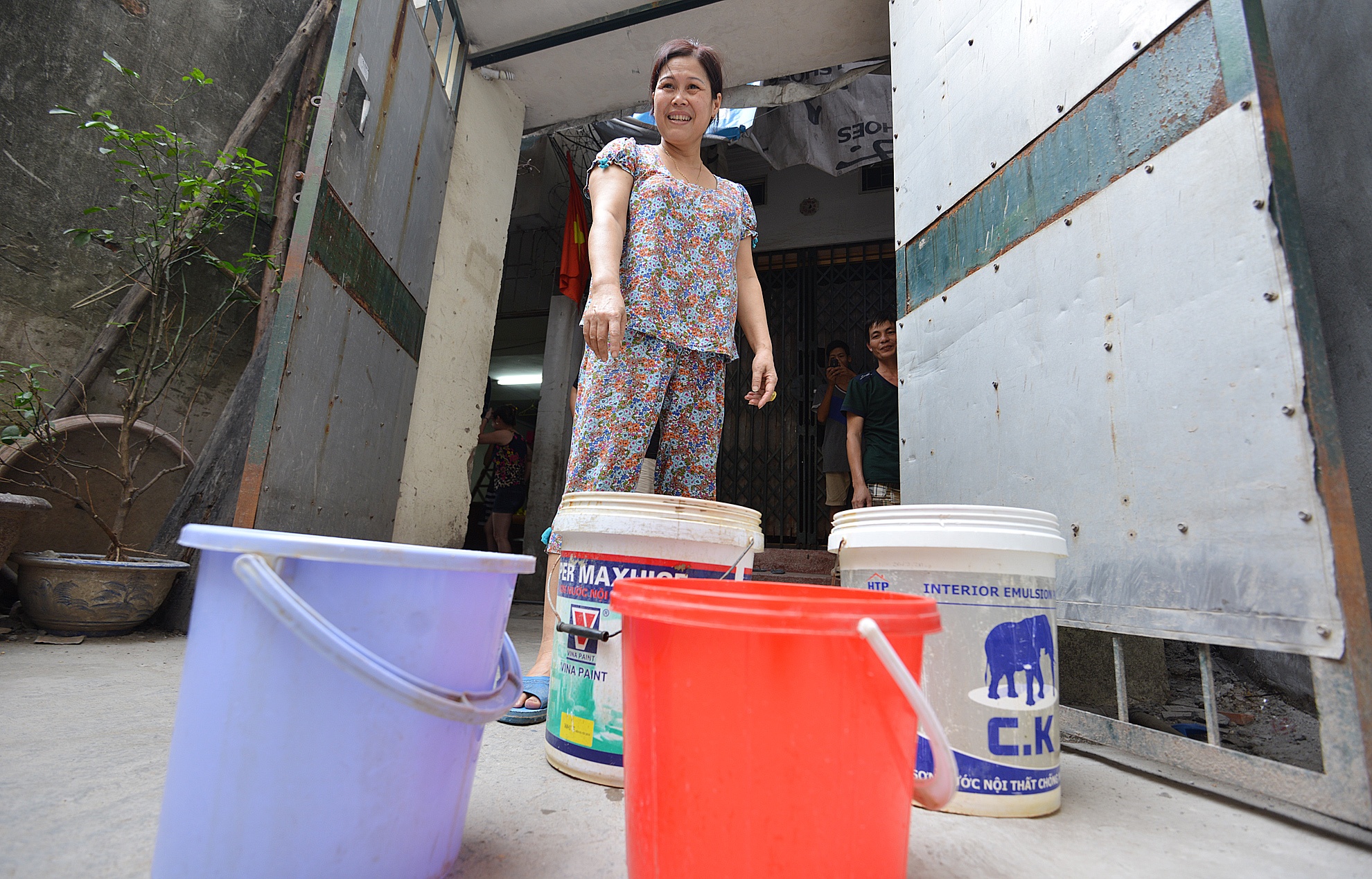 Chị Hà, công nhân thuê trọ tại tổ 3, phường Láng Hạ cho biết: "Tôi phải nghỉ cả buổi chiều để đi xin nước, nhưng chỉ kiếm được 2 xô, đủ đánh răng rửa mặt".