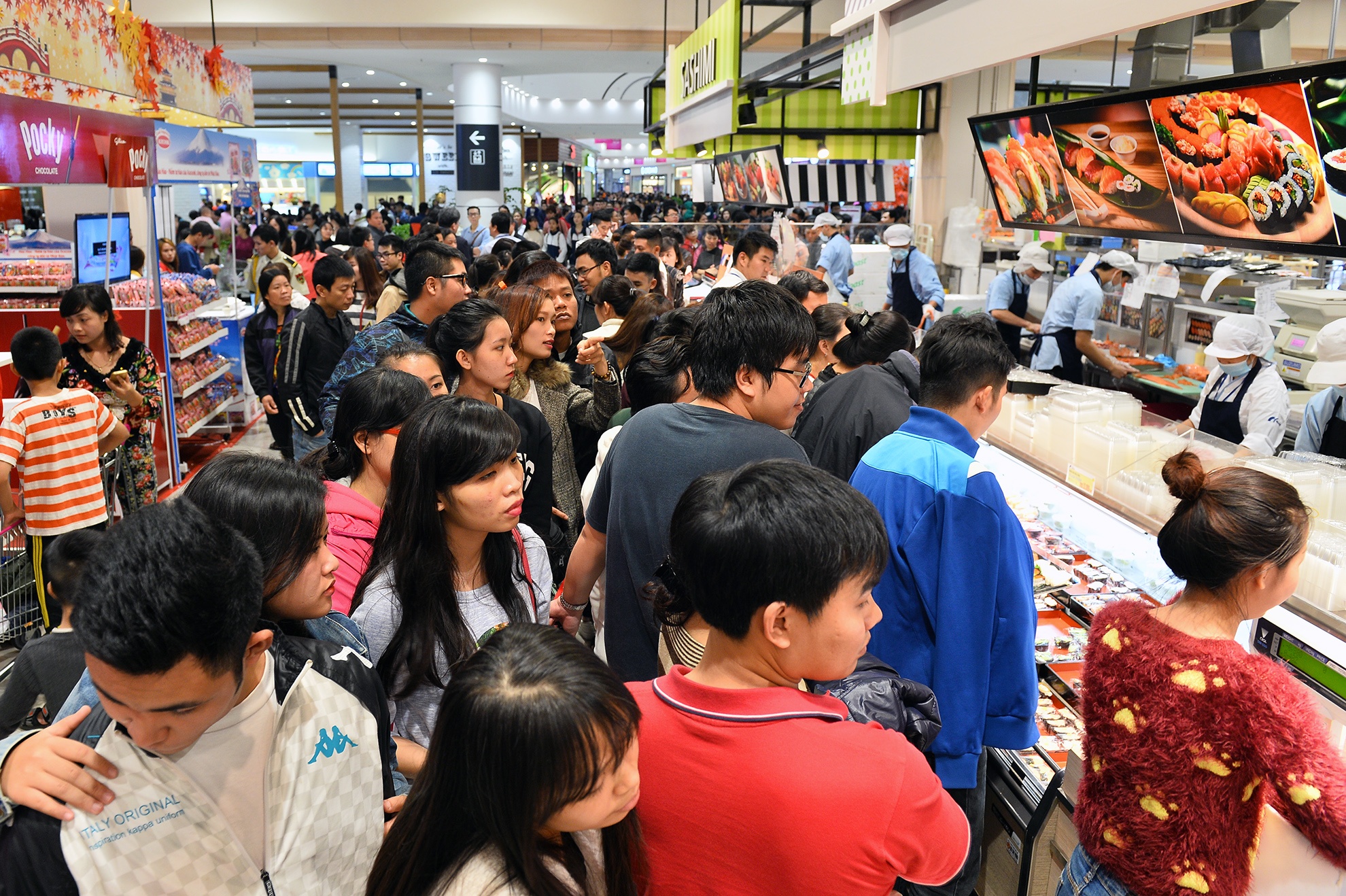 | Siêu thị và các gian bán đồ ăn nhanh kiểu Nhật thu hút đông khách nhất. |