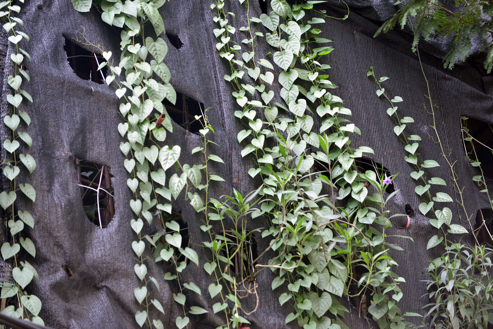 Để tránh muỗi và sâu bọ, cứ cách 1,5m anh Minh lại trồng một cây ngũ da bì. Ngoài ra, 3 tầng cây còn được chắn lưới để giảm nhiệt và chống mọc len vào trong nhà.