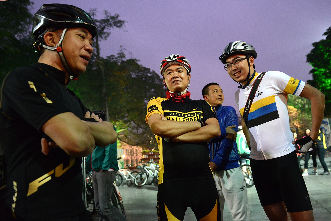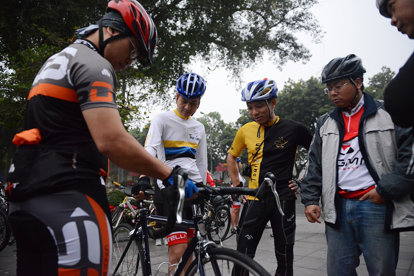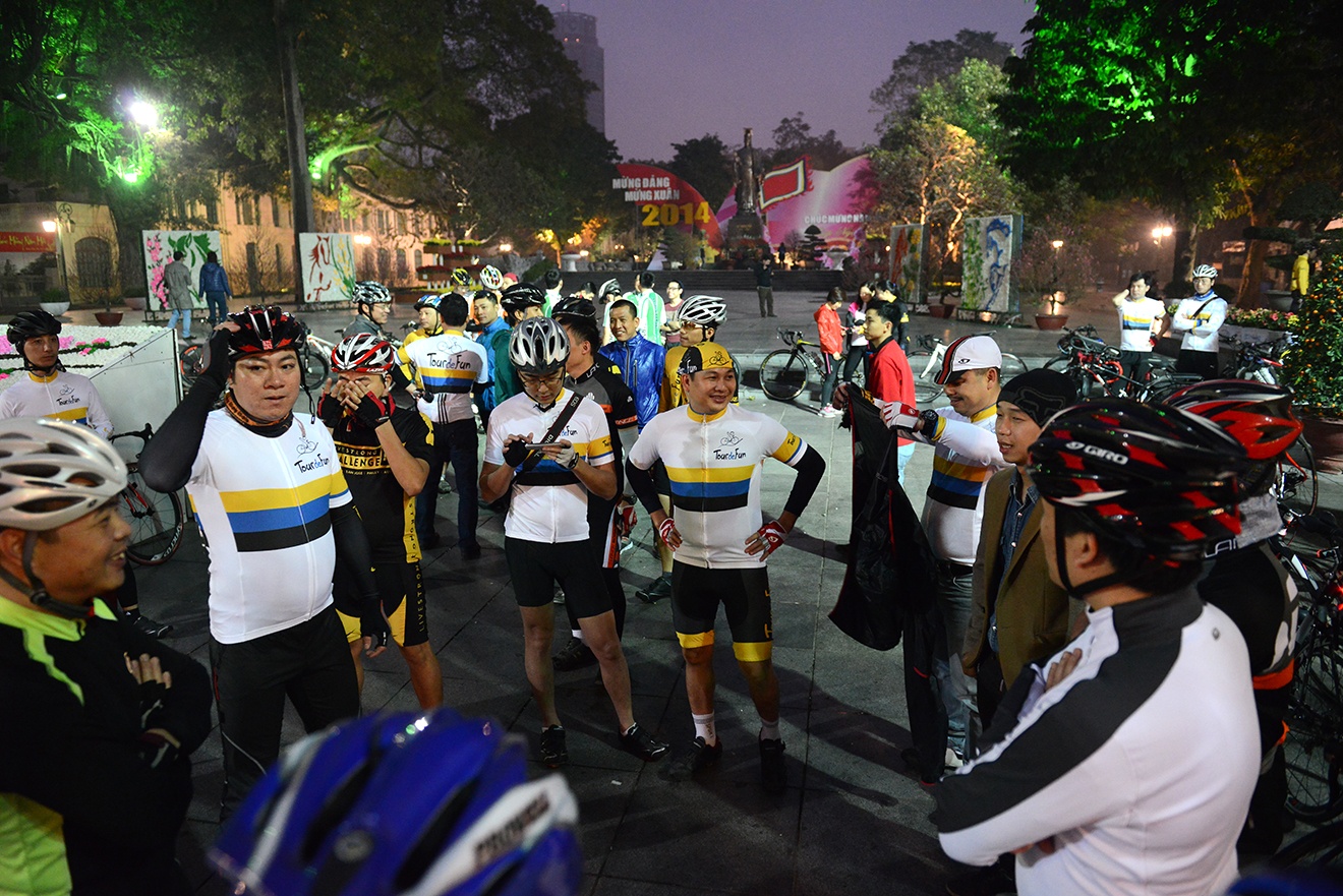 | Đến khoảng 5h30, gần 100 cua rơ nghiệp dư Hà Nội đã tụ tập đông vui dưới chân tượng đài Lý Thái Tổ. |