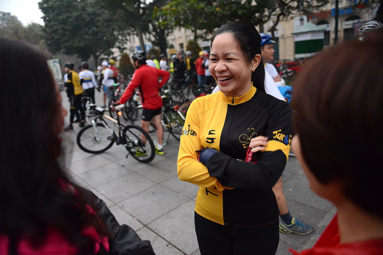 | Đây là năm thứ 2 liên tiếp mọi người đạp xe diễu hành vòng quang hồ Gươm sáng sớm ngày mùng 1 Tết. |