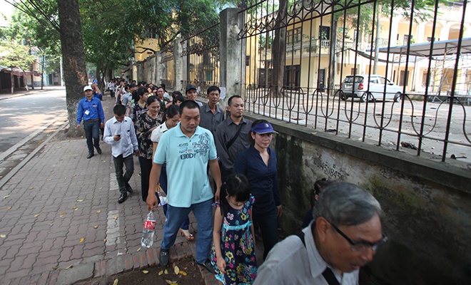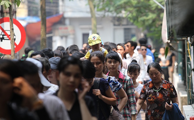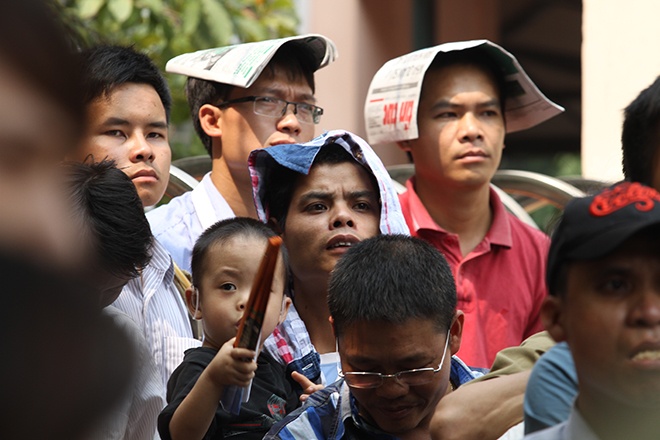 | Đến 12h trưa, dòng người vẫn tiếp tục đổ về. Trẻ nhỏ cũng được cha mẹ đưa đi cùng. |