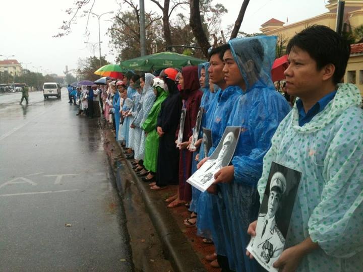 Trong khi, người Hà Nội và TP.HCM đi viếng Đại tướng Võ Nguyên Giáp trong tiết trời nắng ráo thì TP Đồng Hới, Quảng Bình diễn ra trong suốt buổi mưa dầm.