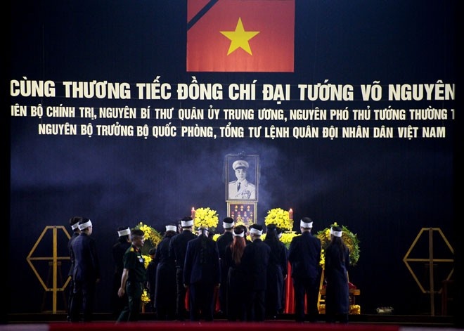 7h30 sáng nay 12/10, Lễ viếng Đại tướng Võ Nguyên Giáp chính thức được bắt đầu tại Nhà tang lễ Quốc gia, Hà Nội. Cùng thời gian này, lễ viếng cũng được tổ chức tại TP.HCM và tỉnh Quảng Bình, quê hương Đại tướng. Theo thông báo của Ban tổ chức lễ tang, trong buổi sáng đến đầu buổi trưa, lễ viếng sẽ dành cho lãnh đạo Đảng, Nhà nước, các đoàn cơ quan hành chính.