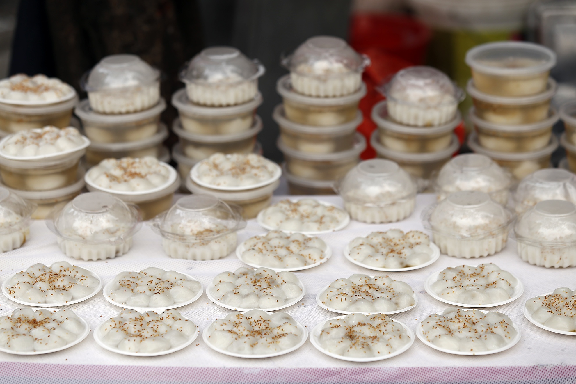 Sáng 2/4 các hàng bán bánh trôi, bánh chay ở chợ Hàng Bè tấp nập người mua mang về thắp hương nhân ngày Tết Hàn thực. Tại làng Mễ Trì, nhiều gia đình cũng tự tay nặn và luộc.