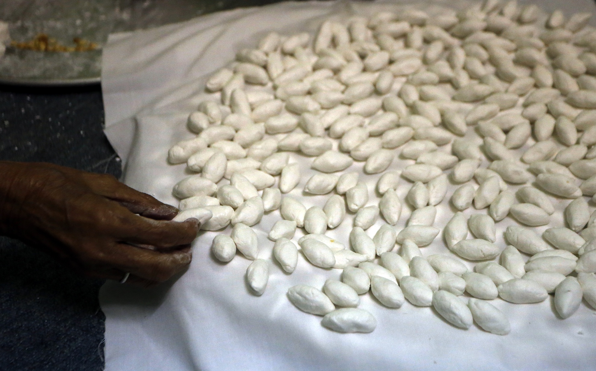 Người dân làm bánh ngay tại chỗ, khi người mua có nhu cầu sẽ nặn bột làm thêm.