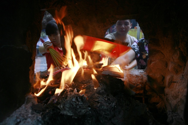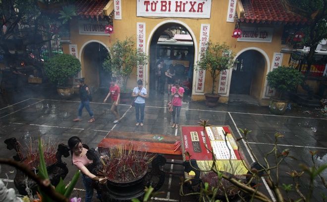 | Hóa vàng mã tại chùa Quán Sứ. |