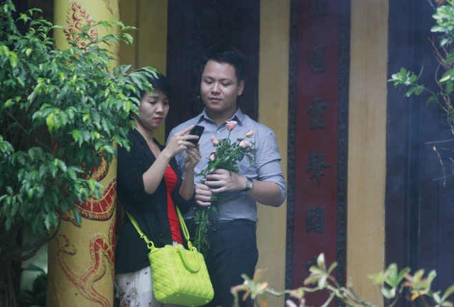 | Anh Thành cùng gia đình đến chùa Trấn Quốc làm lễ, cầu may mắn. |