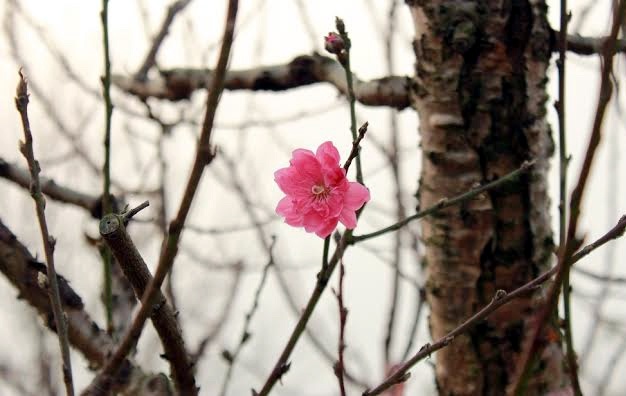 | Lác đác trong các vườn, đào đã nở sớm. |