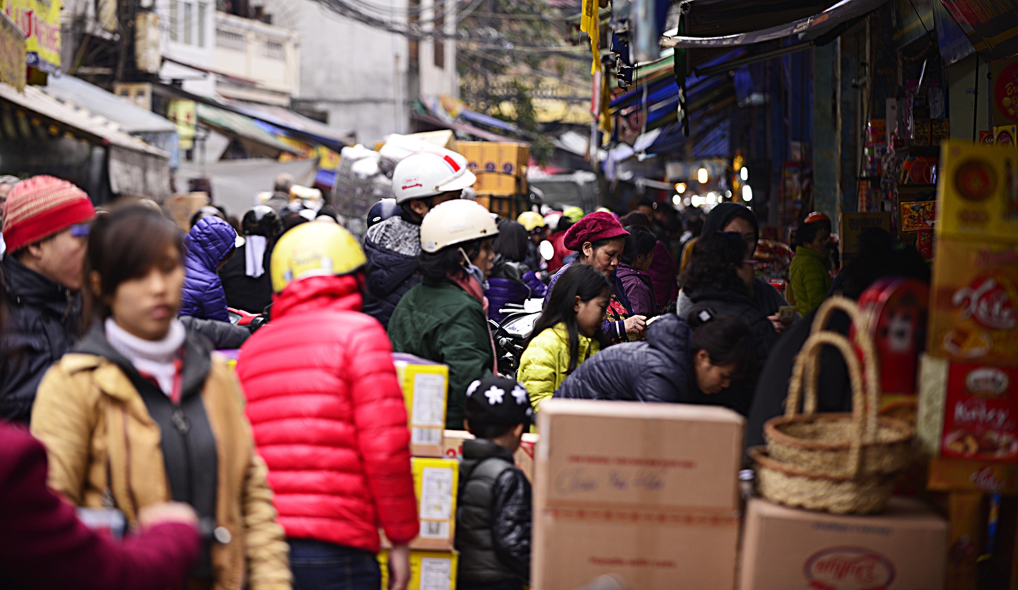 Tranh thủ ngày cuối tuần, người dân Hà Nội đổ về các chợ, siêu thị khu vực trung tâm thành phố để mua sắm chuẩn bị đón Tết Bính Thân.