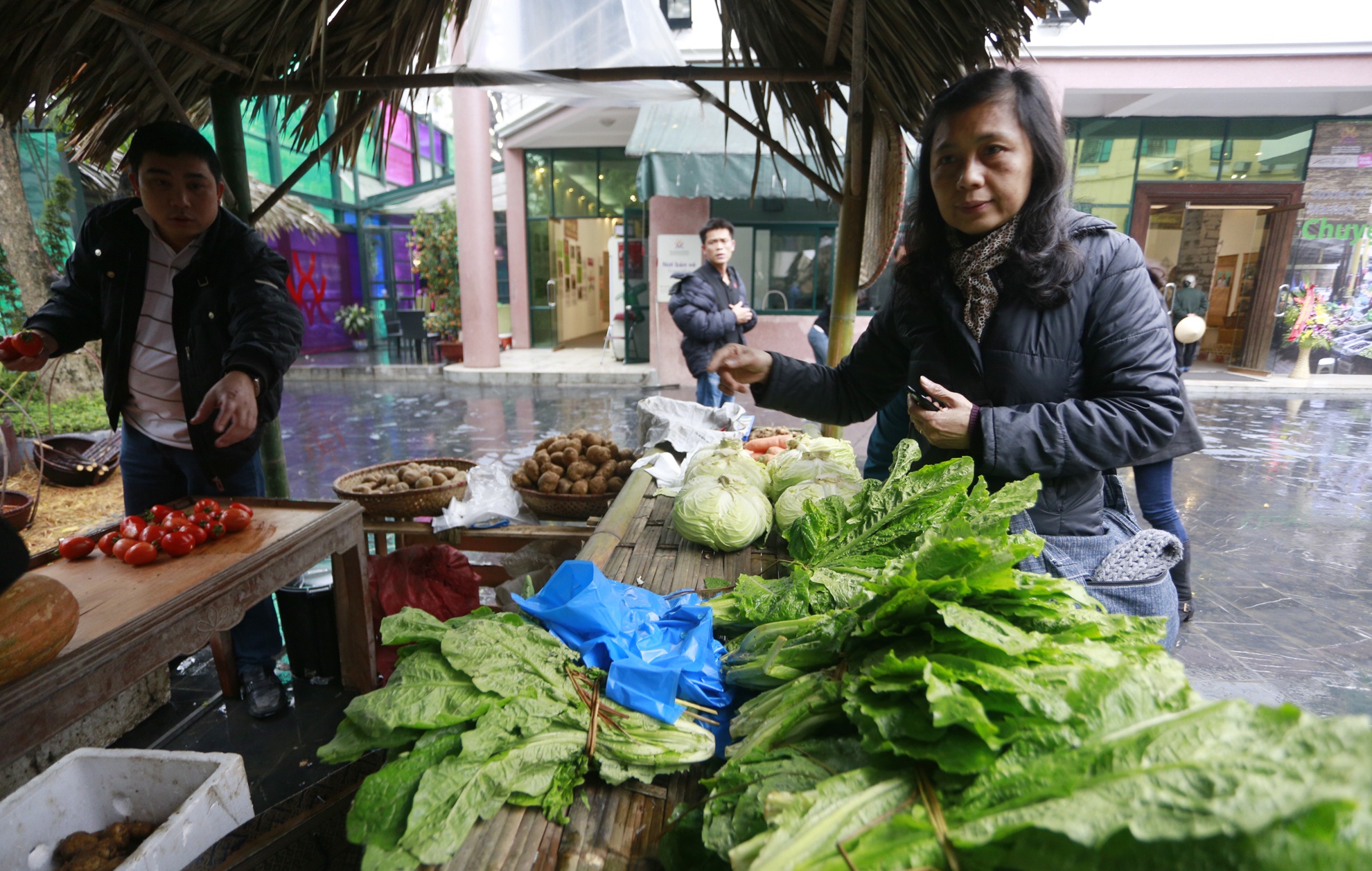 | Chị Thuận (Phố Huế, Hà Nội) có mặt tại phiên chợ chiều 7/3. "Tôi đến mua vì rau ở đât rất tươi, ngoài ra còn muốn thưởng thức những món ăn ngon từ các tỉnh", chị nói. |