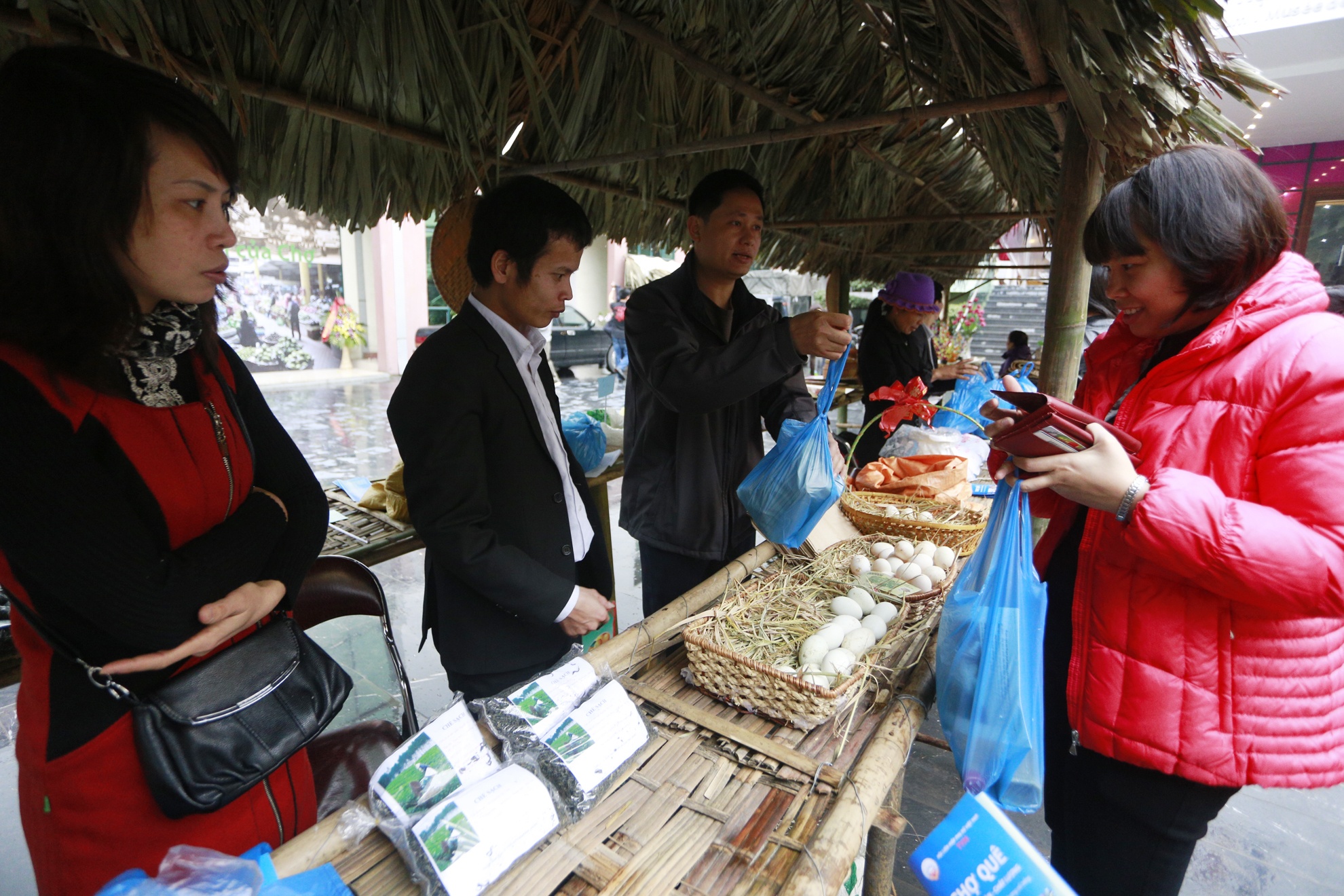 | Nhiều đặc sản từ các tỉnh Bắc Ninh, Hưng Yên, Thanh Hóa có mặt tại chợ quê thu hút đông đảo người tham gia. |