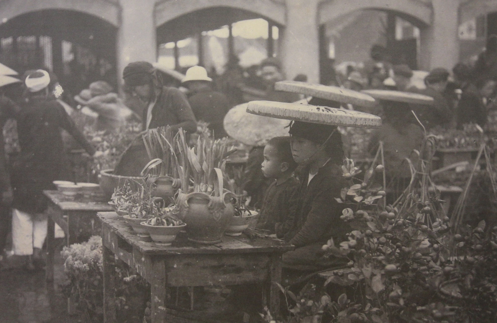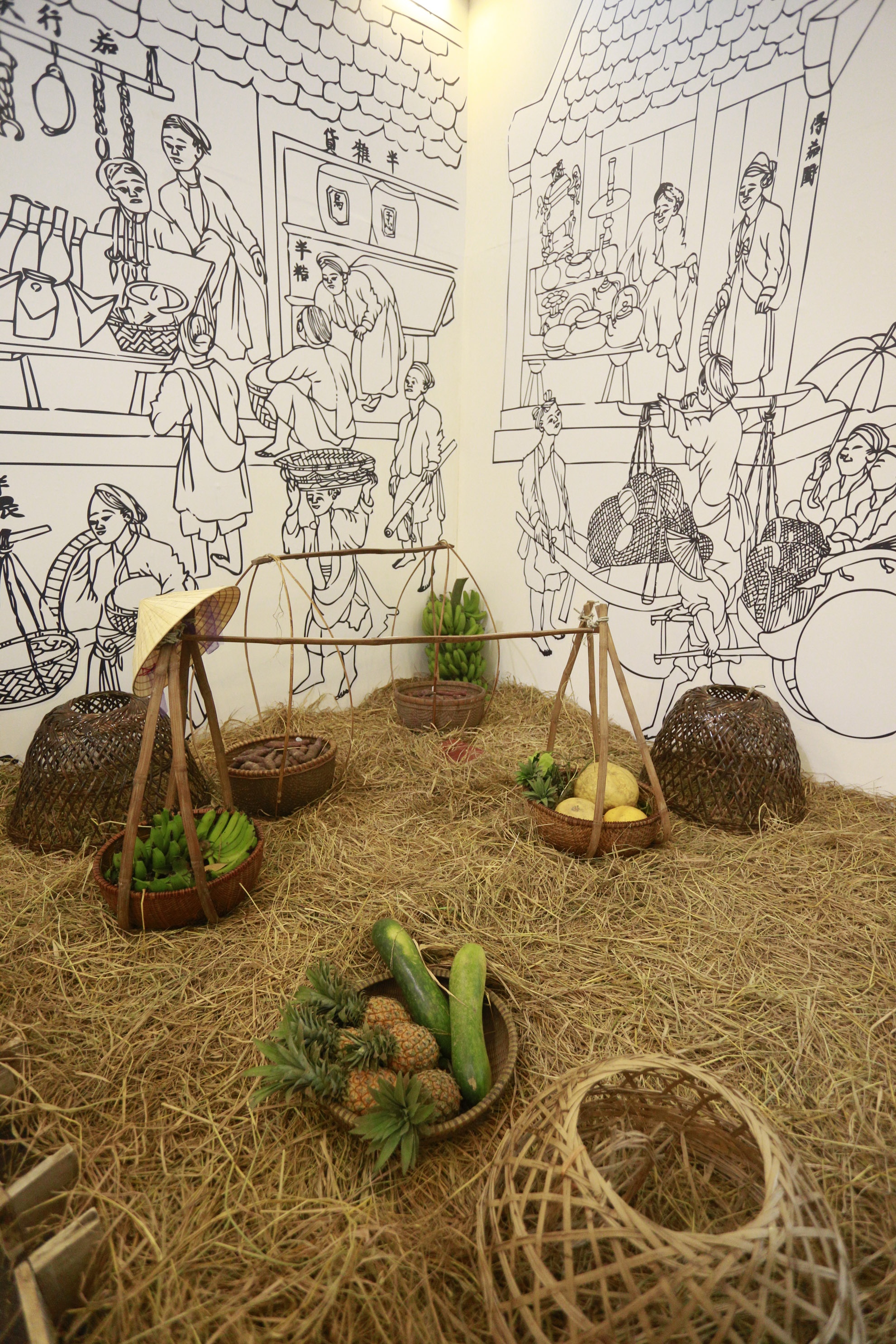| Hình tư liệu chợ quê xưa được trưng bày trong khuôn viên bảo tàng. |
