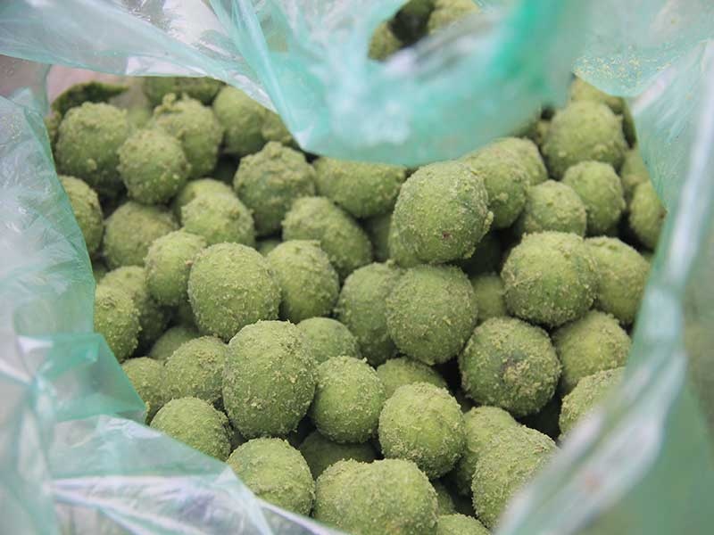 Sấu sau khi chà xong được đựng trong rổ nhựa để sàng bớt lớp vỏ còn dính trong quả. Quả sấu sau khi chà vỏ vẫn giữ được màu nên khách hàng khá chuộng.