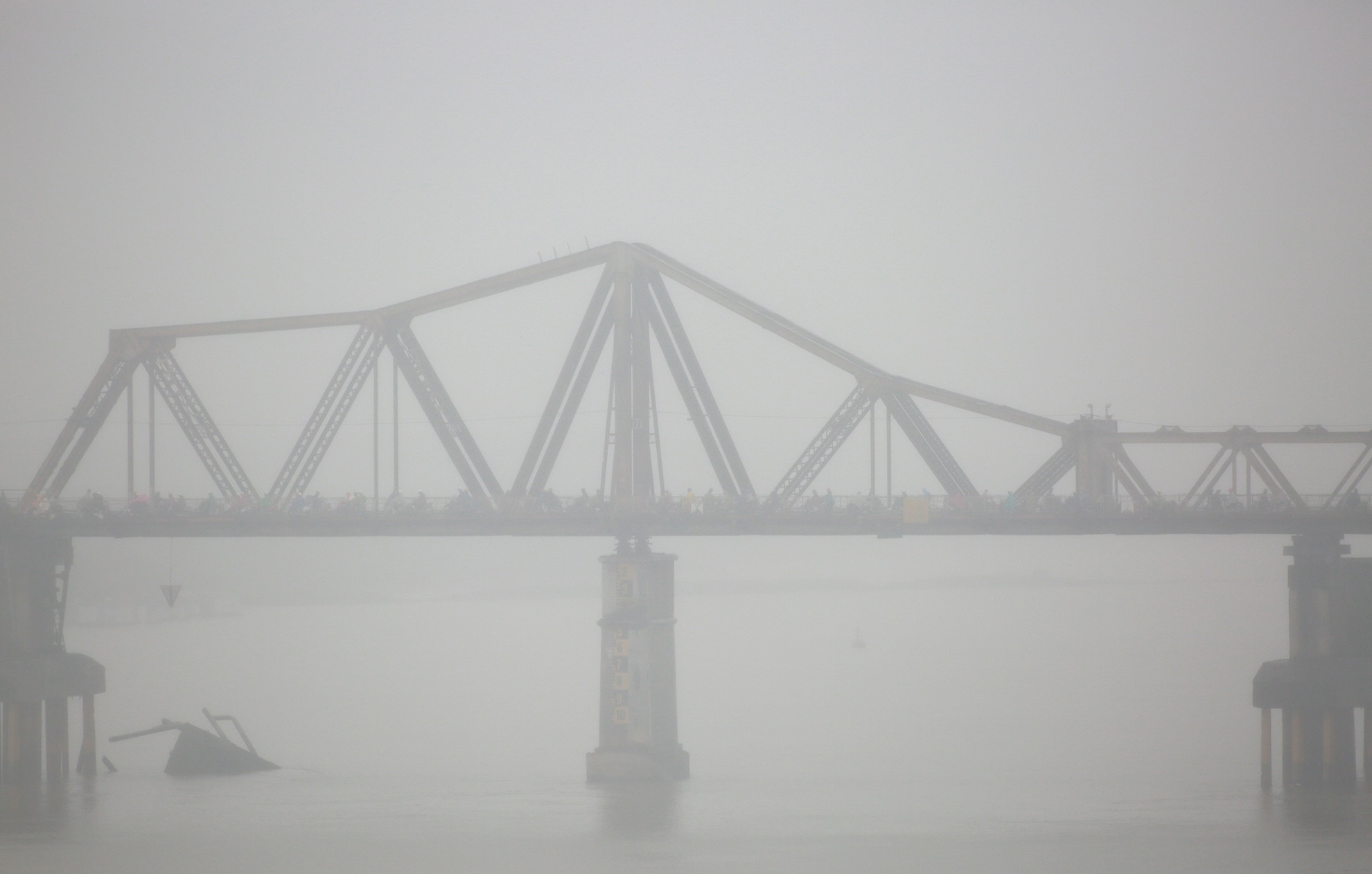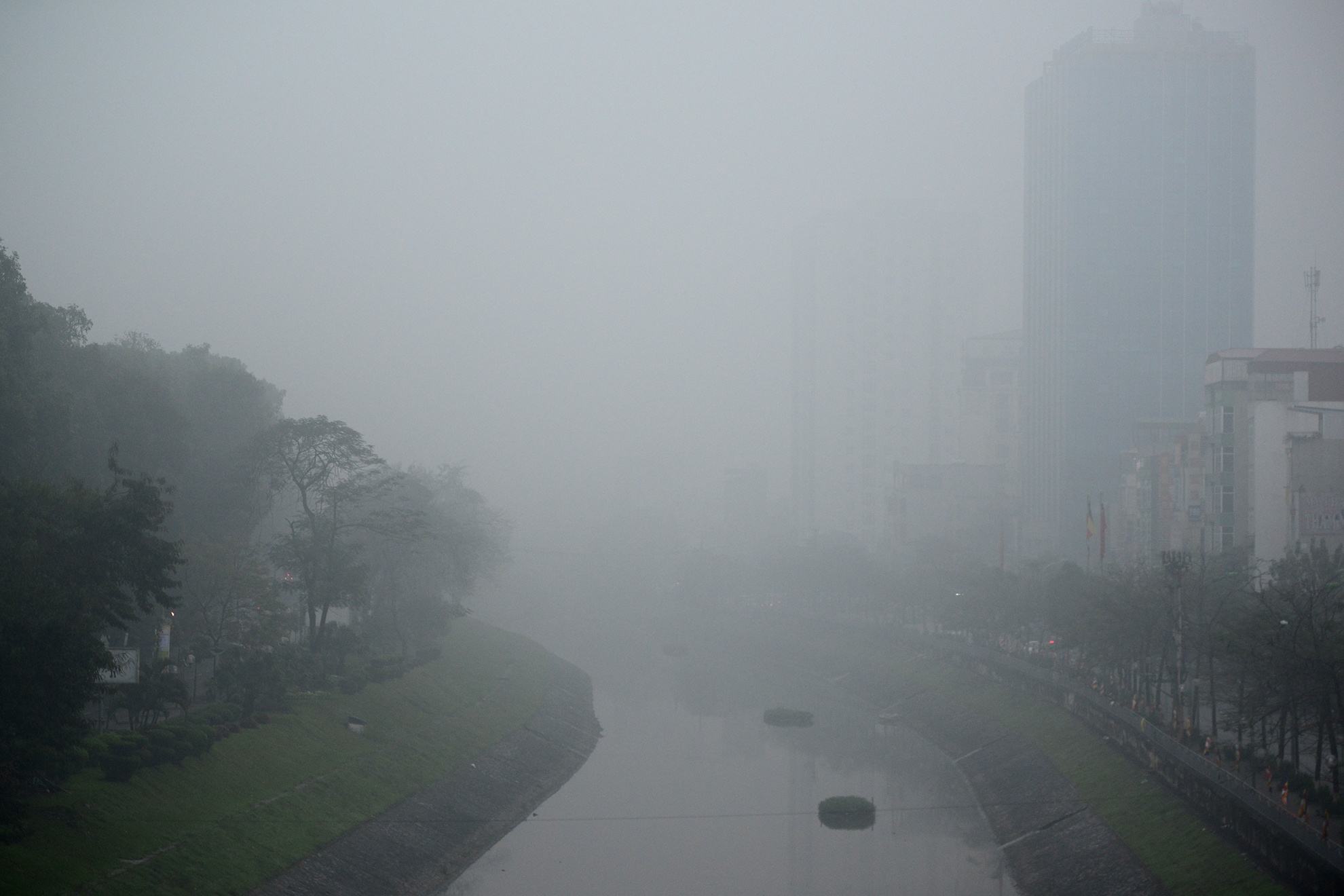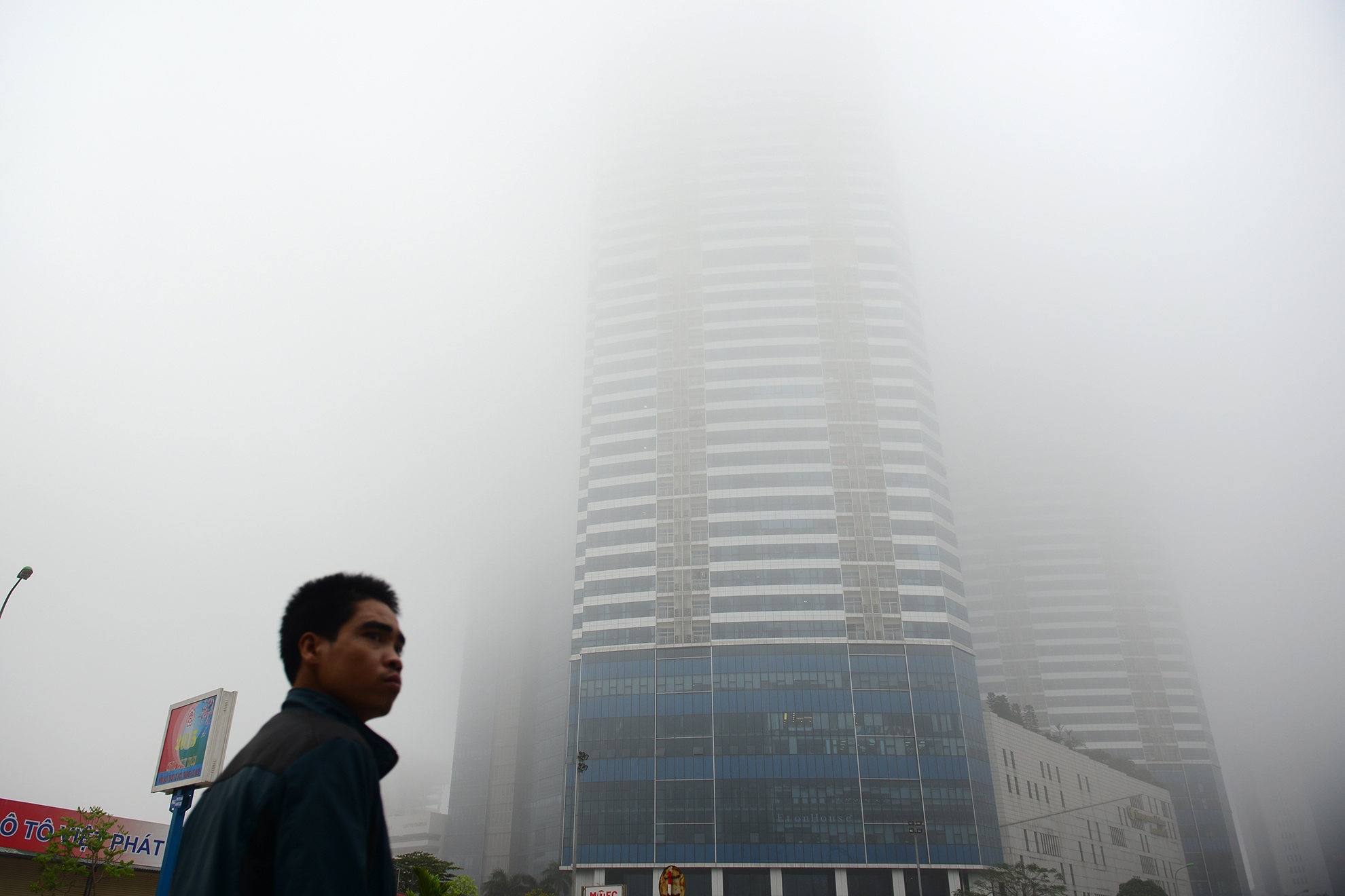 | Những toà cao ốc tại Hà Nội dường như biến mất trong lớp sương mù. |