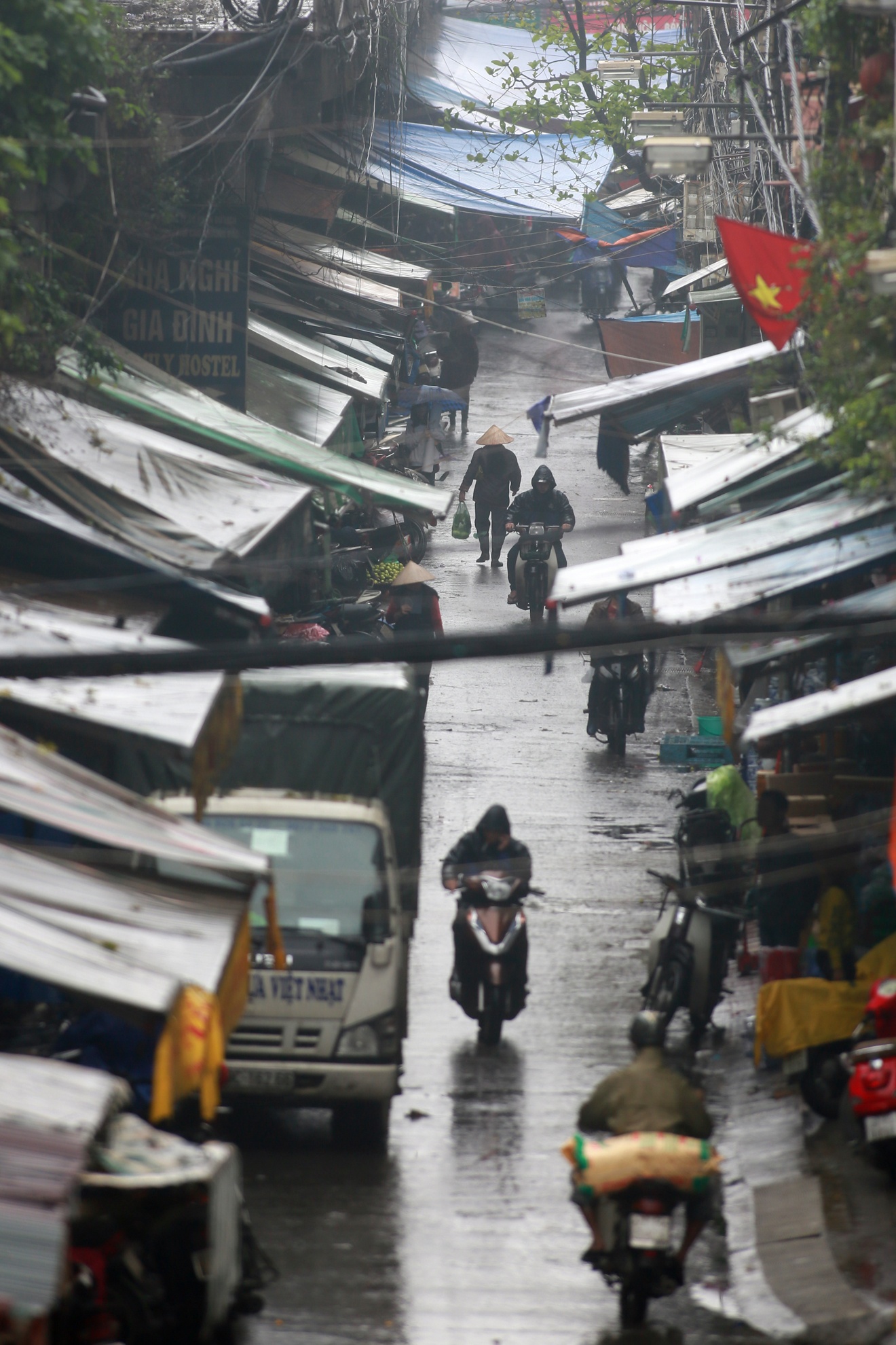 | Phố cổ Hà Nội trở nên nhớp nháp trong thời tiết mưa phùn, trời nồm, độ ẩm lên tới 98%, |