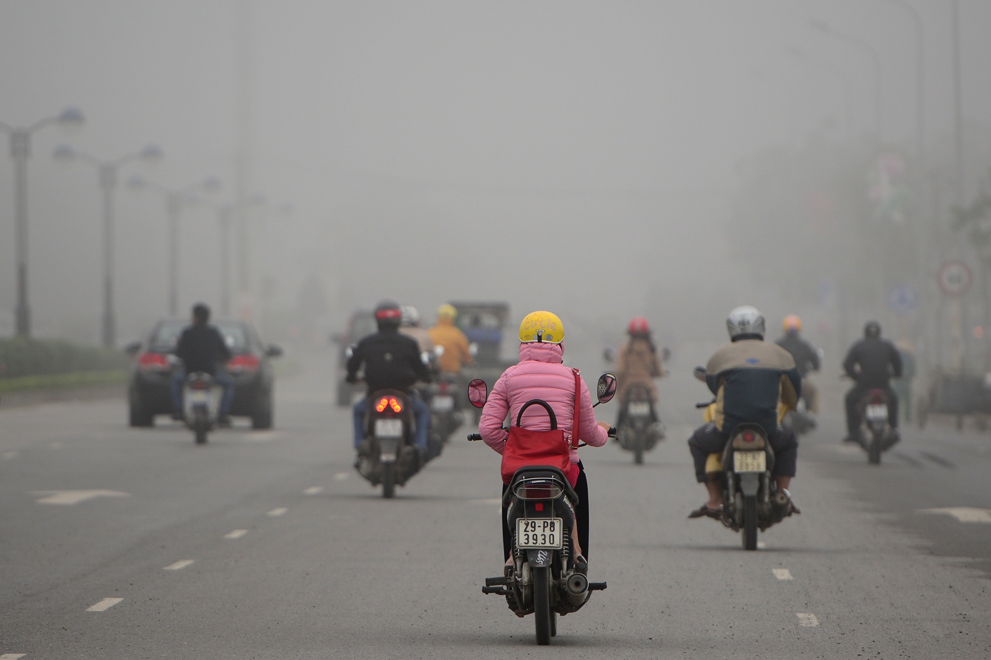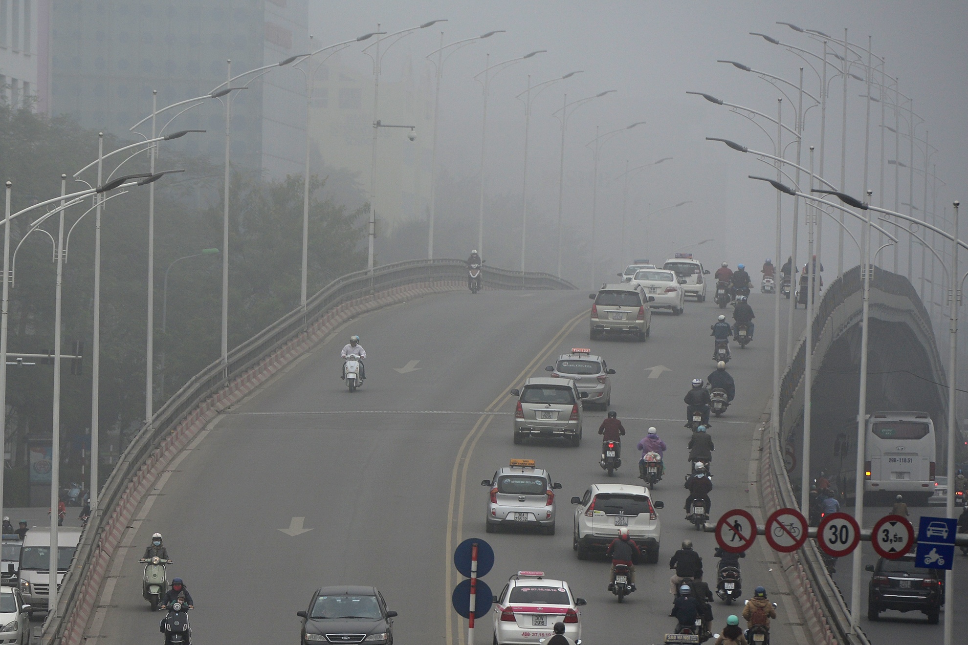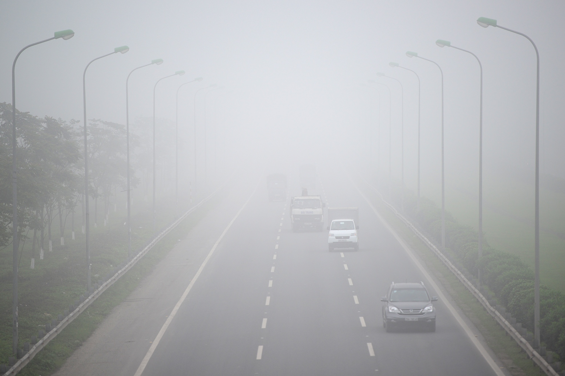 | Các trục đường đại lộ, cao tốc ra vào thủ đô tầm nhìn rất thấp, ôtô lưu thông phải giảm tốc độ để đảm bảo an toàn.