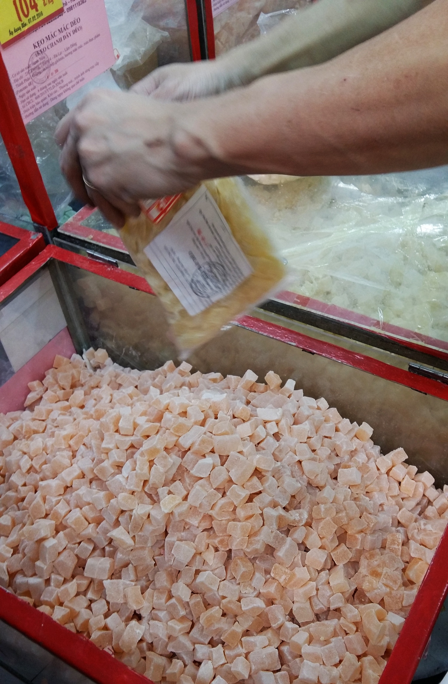 | Khách tự chọn bánh mứt nhưng đợi cân rất vất vả. |