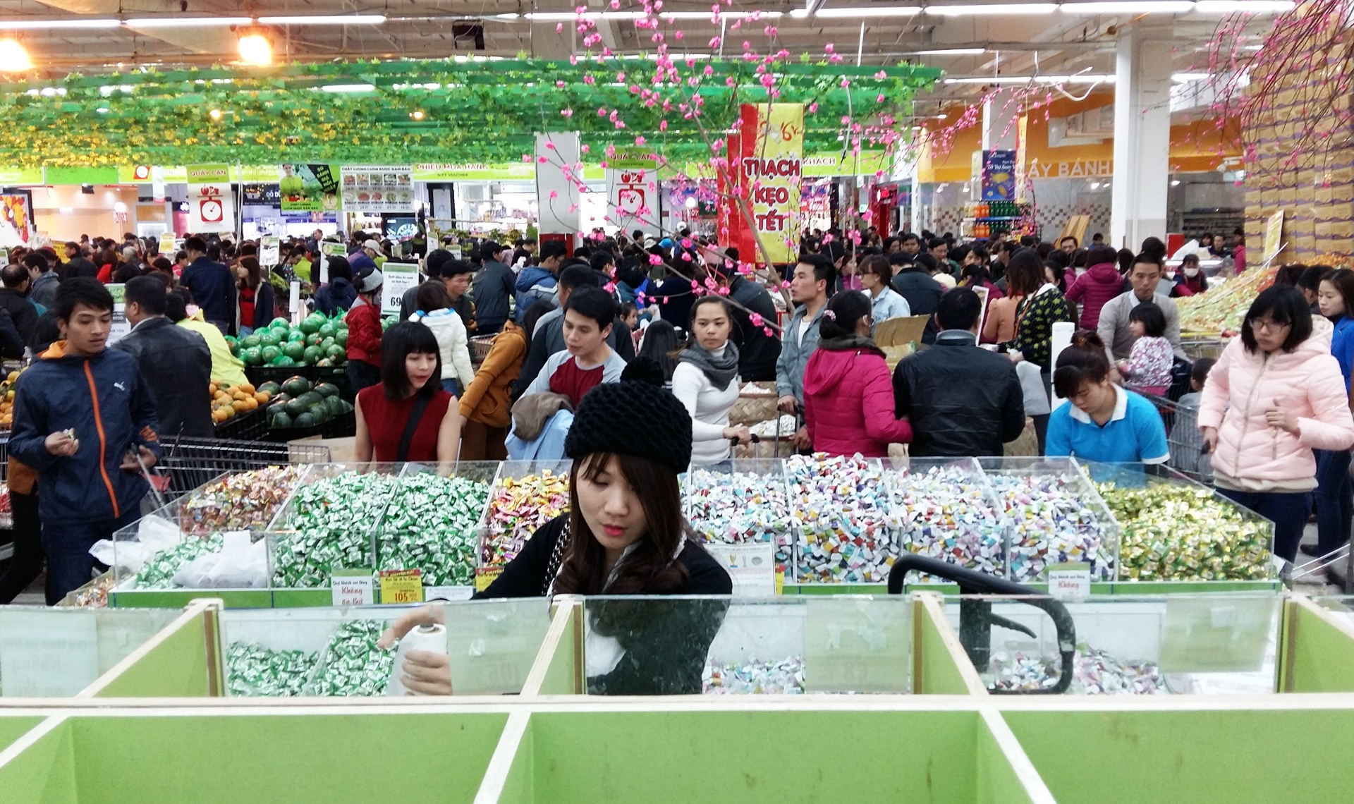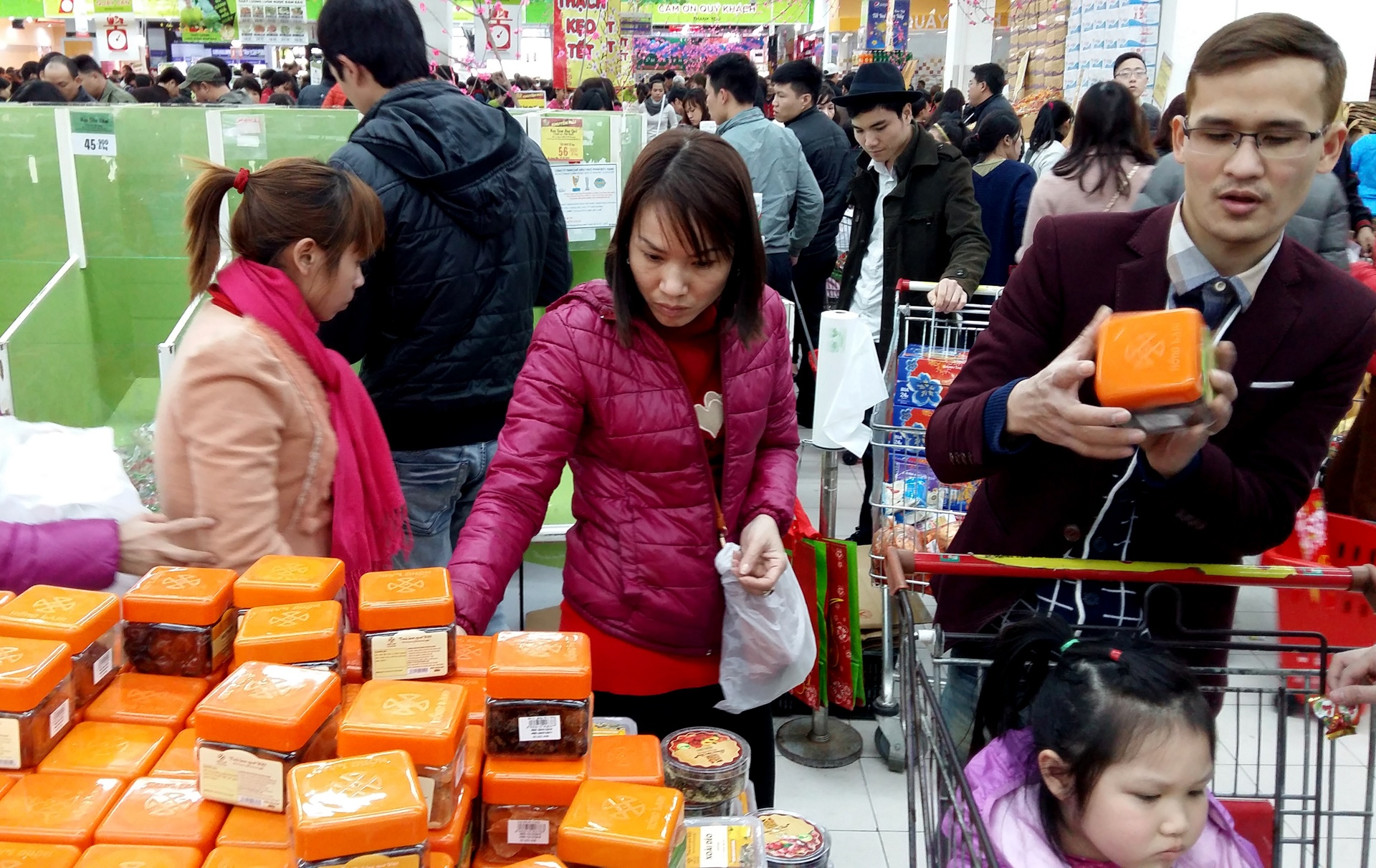 Người Hà Nội ùn ùn vào siêu thị sắm Tết