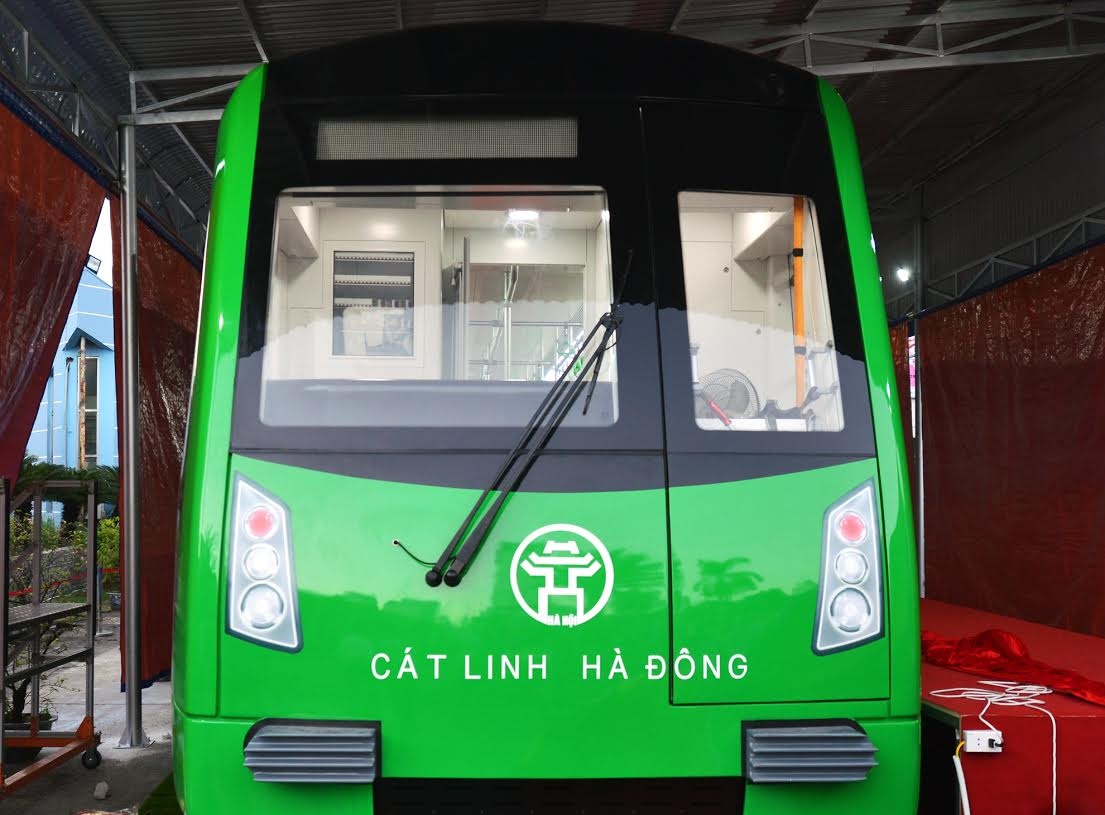 Đây là đầu tàu mẫu trong số 13 đoàn tàu mà Ban quản lý dự án đường sắt (Bộ Giao thông Vận tải) dự kiến mua cho dự án đường sắt đô thị Cát Linh - Hà Đông.