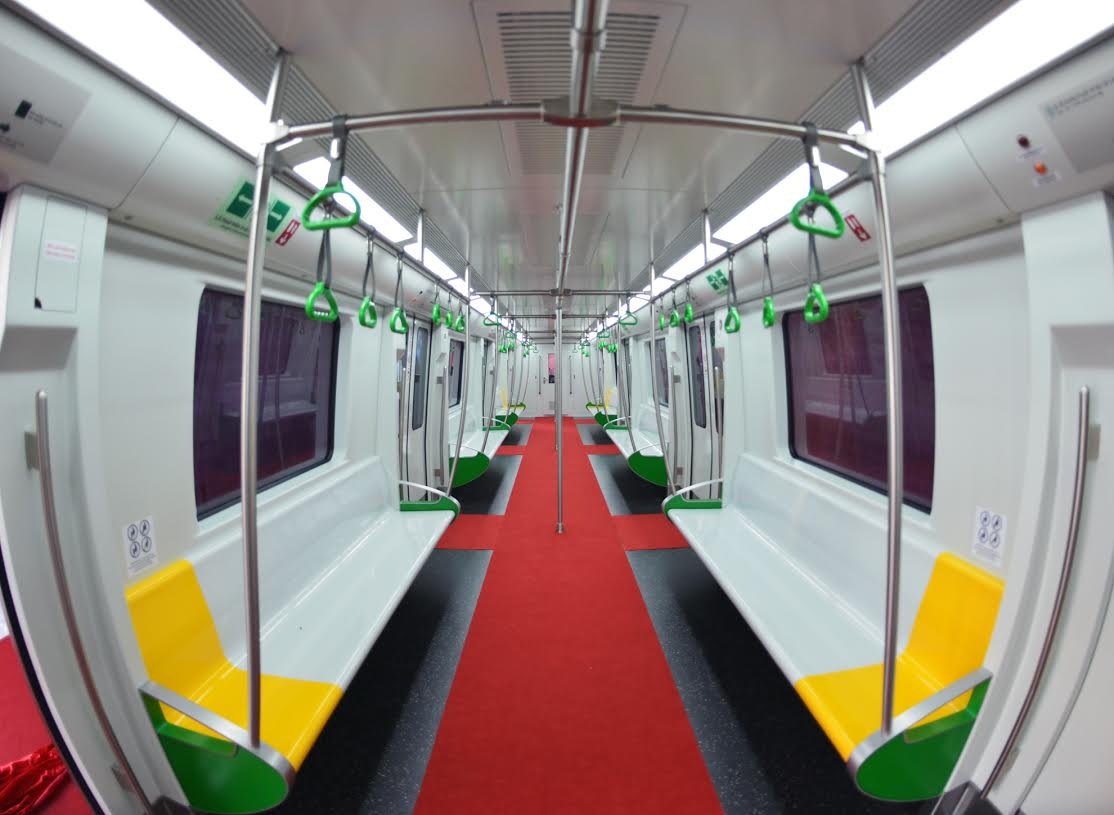 Toa tàu rộng khoảng 2,8 mét, bố trí 6 ghế dài, 2 hàng cột cong về phía giữa toa, dọc theo lối đi giúp hành khách đứng bám ổn định khi đông. Hai đầu của toa xe bố trí khu vực dành cho xe lăn, ghế ngồi ưu tiên (màu vàng).