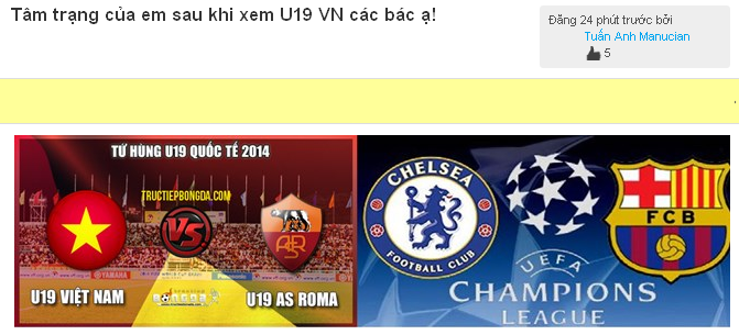 | Trận đấu giữa U19 Việt Nam và U19 AS Roma được so sánh với trận đại chiến tại Champions League giữa Barca và Chelsea. Chia sẻ của CĐV trên một diễn đàn. |