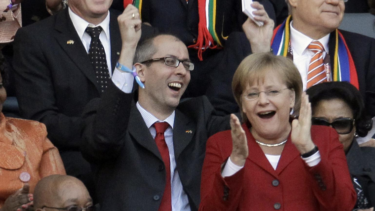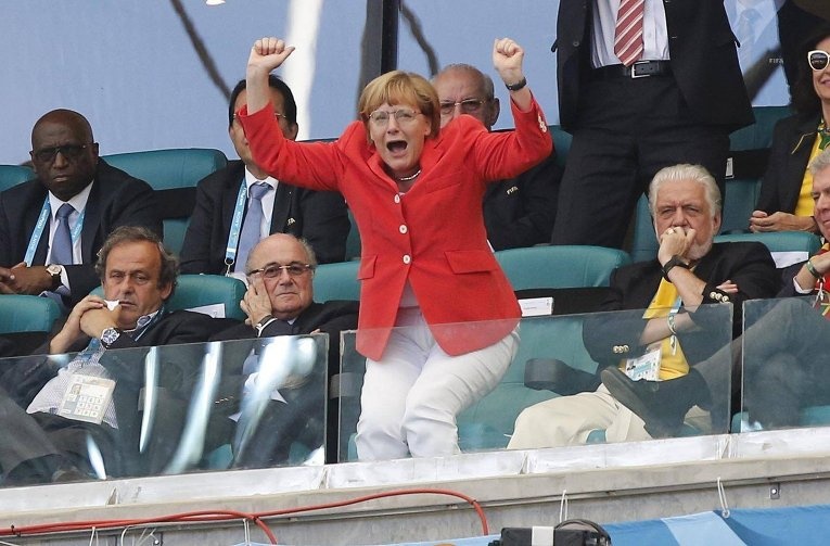 Là một trong những người hâm mộ môn thể thao vua, bà Merkel không ngần ngại thể hiện niềm vui. Ảnh: Getty Images |