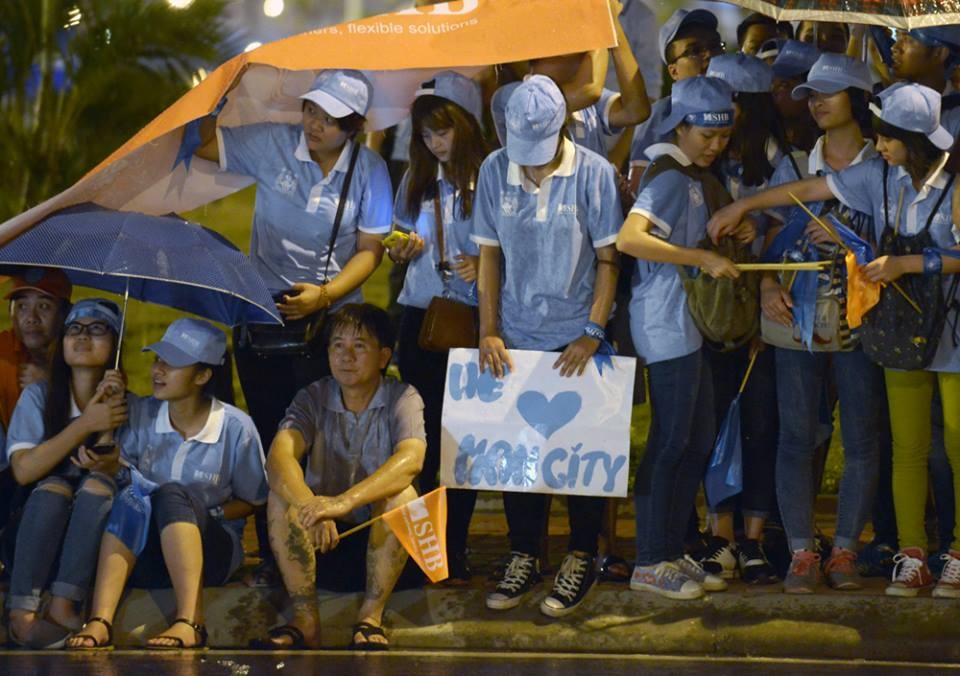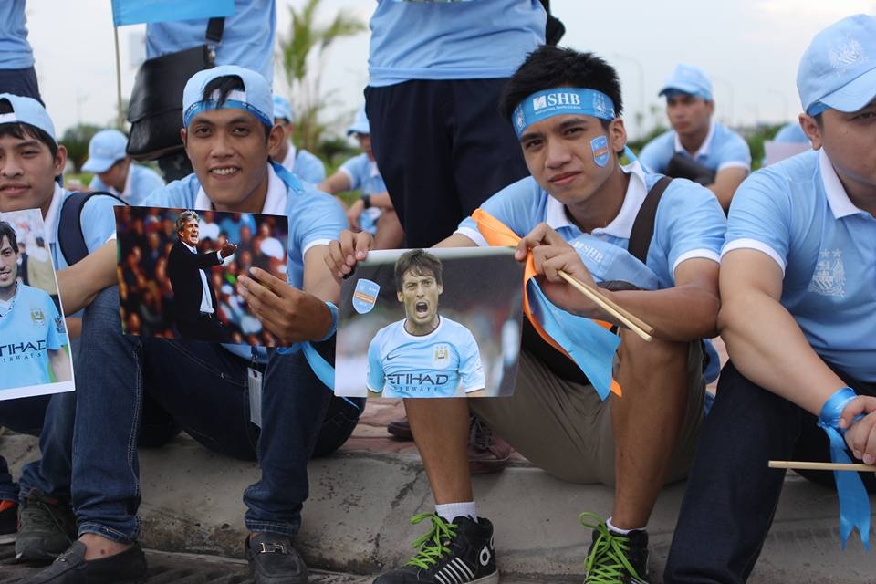 | Người hâm mộ Man xanh đang háo hức gặp mặt những thần tượng như Joe Hart, David Silva, Raheem Sterling... Ảnh: Mạnh Thắng. |