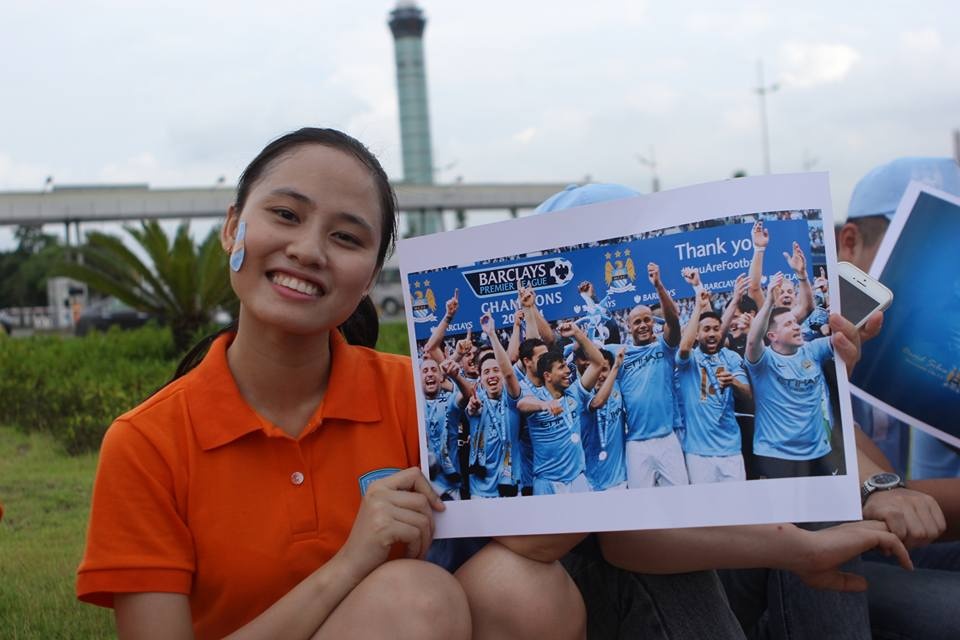 | Trần Bích Ánh, học sinh lớp 12 tại Nam Định cho biết: "Sáng nay, sau khi tan học, em lên Hà Nội và ra thẳng sân bay Nội Bài để đón Man City". Ảnh: Mạnh Thắng. |