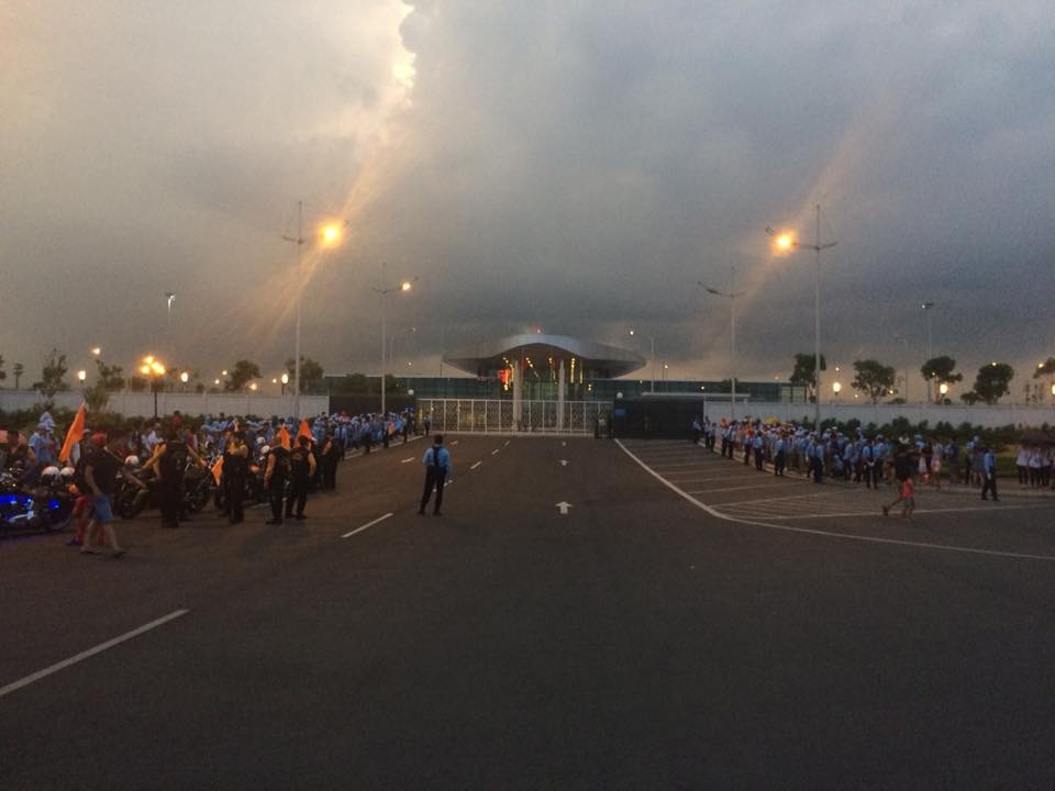| 19h20, xe rời sân bay Nội Bài trước sự cổ vũ cuồng nhiệt của người hâm mộ Việt Nam. Ảnh: Hoàng Anh. |