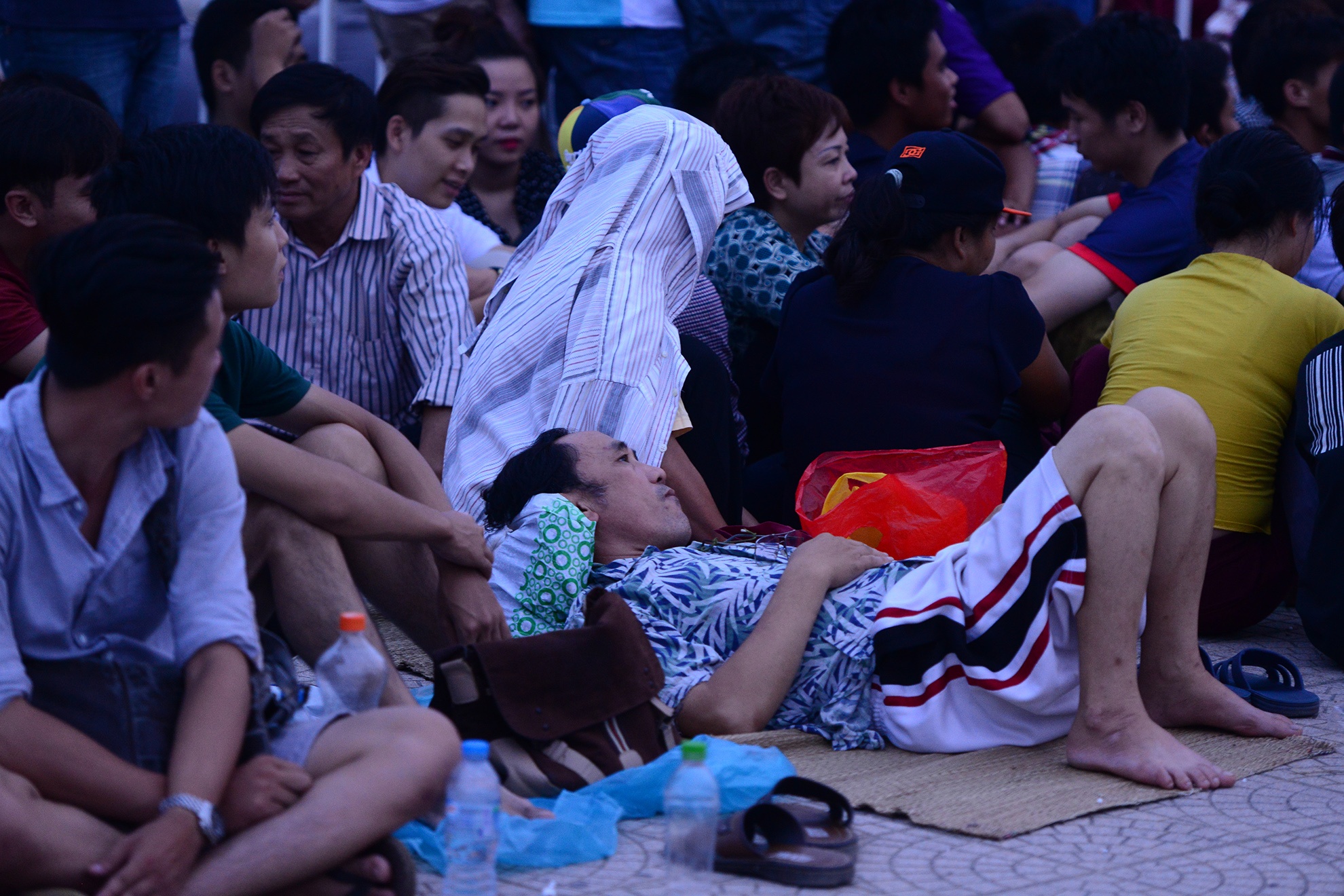 Nhiều người ngủ gà ngủ gật ngồi tại chỗ, không dám ra khỏi vị trí đã giữ trước.