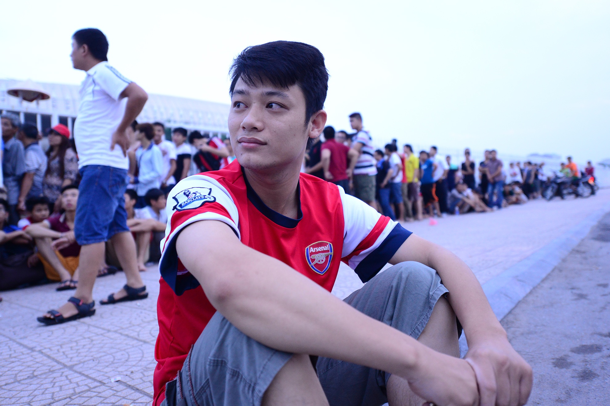 | Anh Tuyến (27 tuổi, cổ động viên của Arsenal) tuy không hâm mộ đội bóng Man xanh nhưng rất háo hức được xem các ngôi sao của giải ngoại hạng Anh thi đấu. Năm 2013, anh cũng mua được vé xem trận Arsenal với tuyển Việt Nam trên sân Mỹ Đình."Tôi đến từ 5h sáng, cảm giác chờ đợi khá thú vị, háo hức và cũng mệt mỏi", Tuyến chia sẻ. |