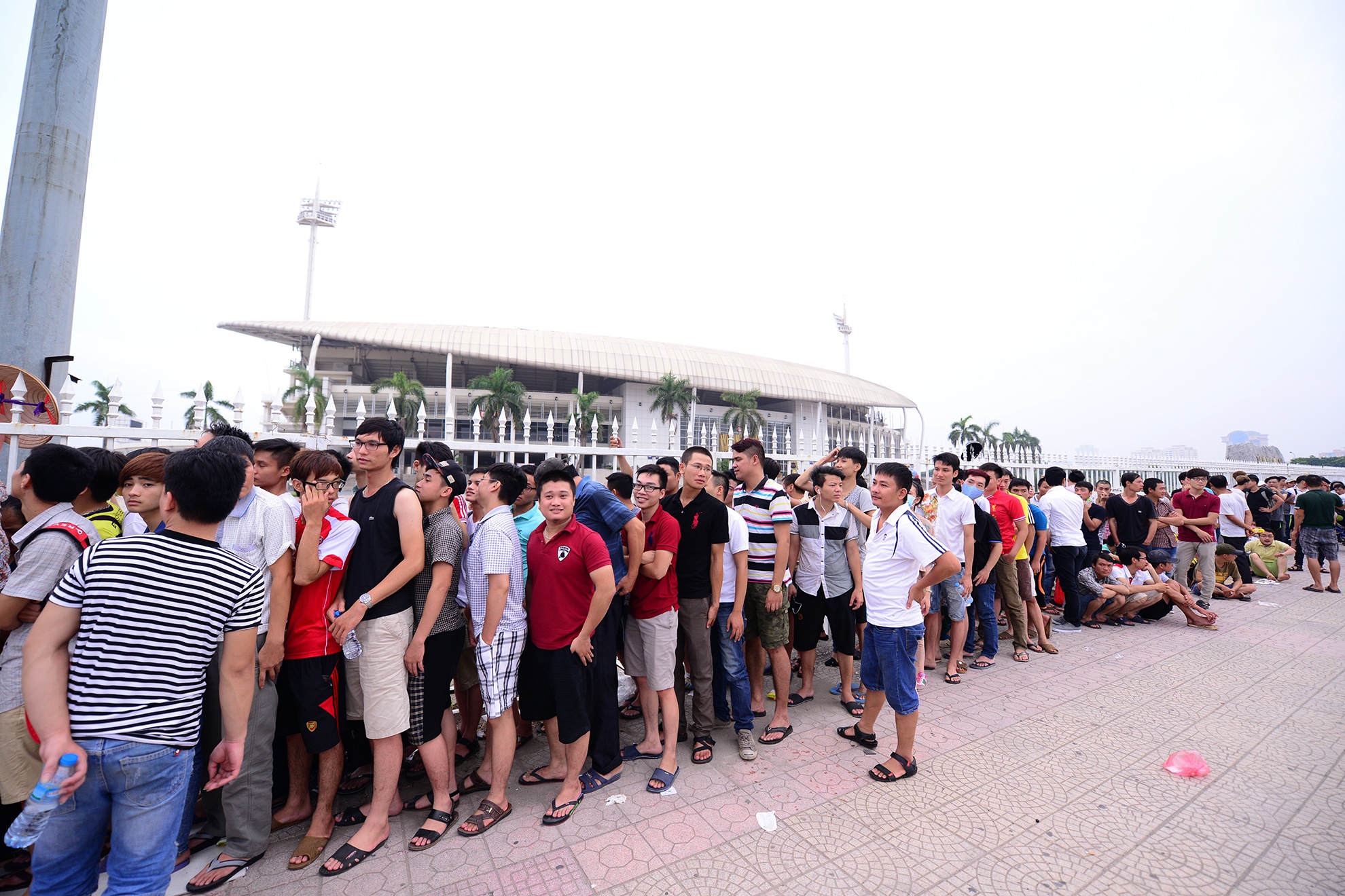 | 5h sáng, trước cổng chính sân vận động quốc gia Mỹ Đình, hàng trăm người đã xếp hàng chờ đợi để được mua vé xem trận giao hữu bóng đá giữa đội tuyển quốc gia Việt Nam và CLB Manchester City (Anh). |