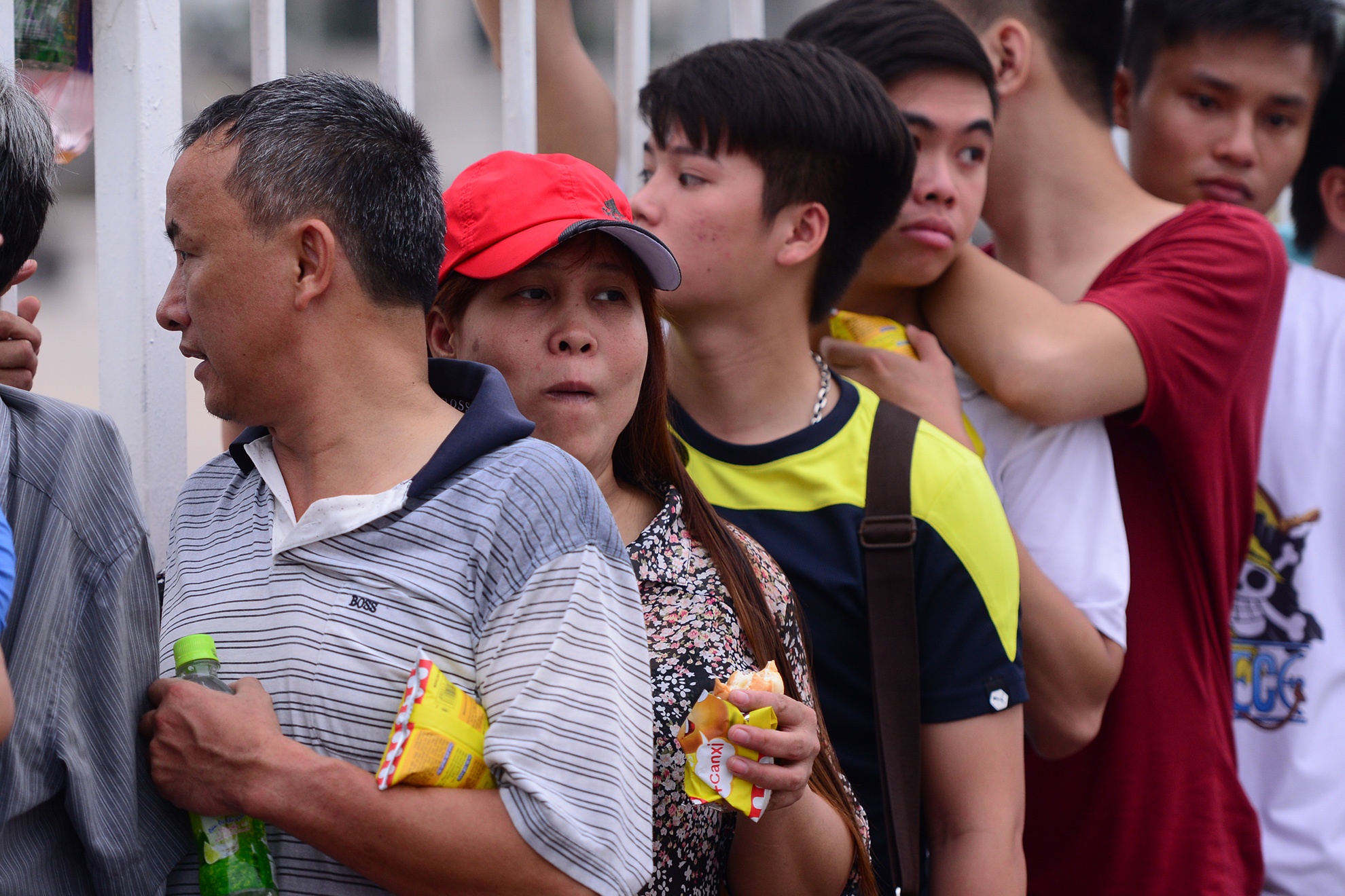 | Trong số hàng trăm người chờ đợi xếp hàng, có không ít là dân phe vé hoặc xếp hàng thuê. |