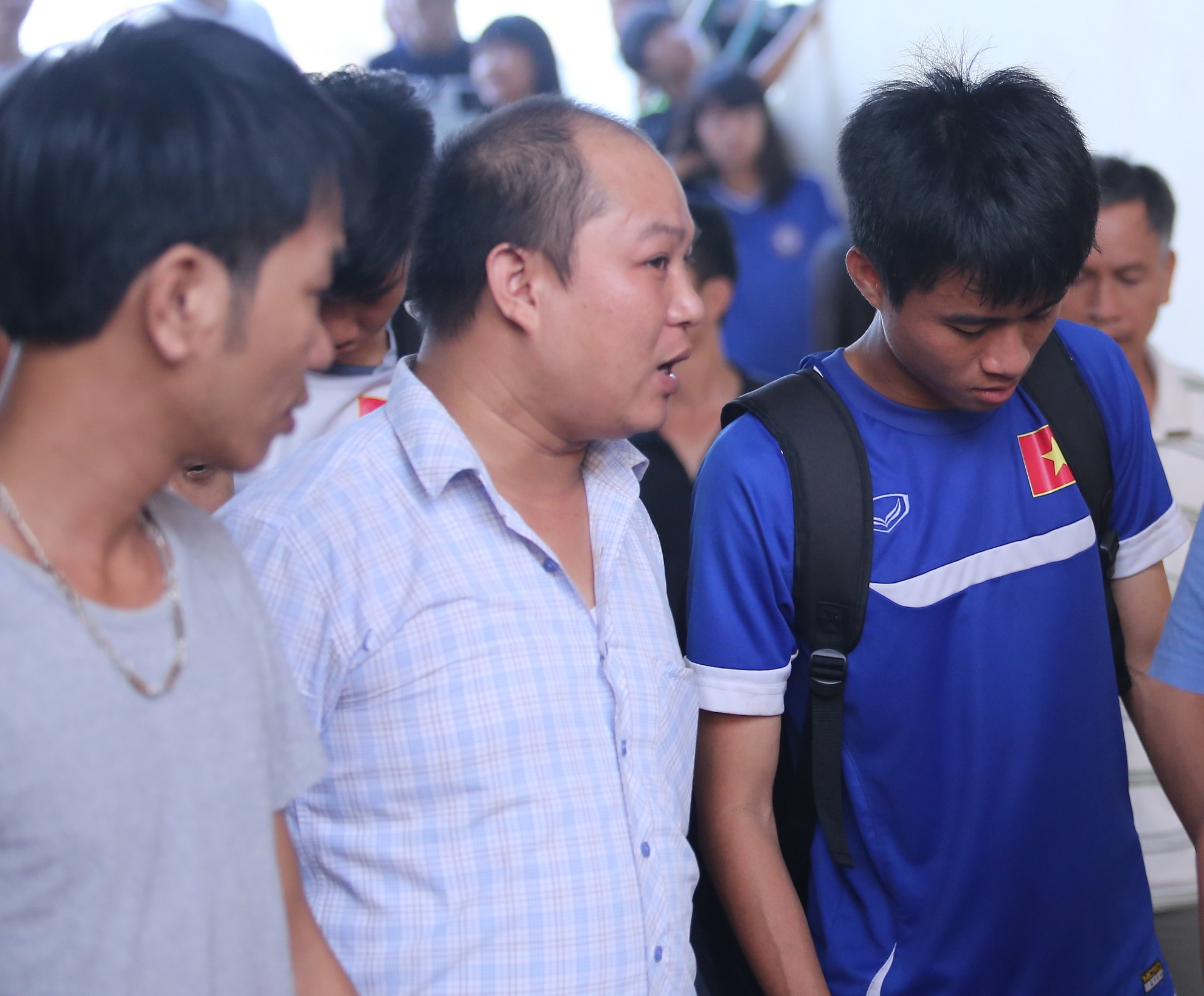 | Người hâm mộ vây quanh hỏi thăm chấn thương của Thanh Hậu. Ở tình huống phút 70, Thanh Hậu bị một tiền vệ U19 Lào sút trúng bắp chân khiến anh nằm sân đau đớn. Sau đó, khá đông người dân nán lại để vẫy tay chào các cầu thủ U19 Việt Nam lên xe rời sân vận động, trở về Hà Nội ngay trong tối 12/8. |