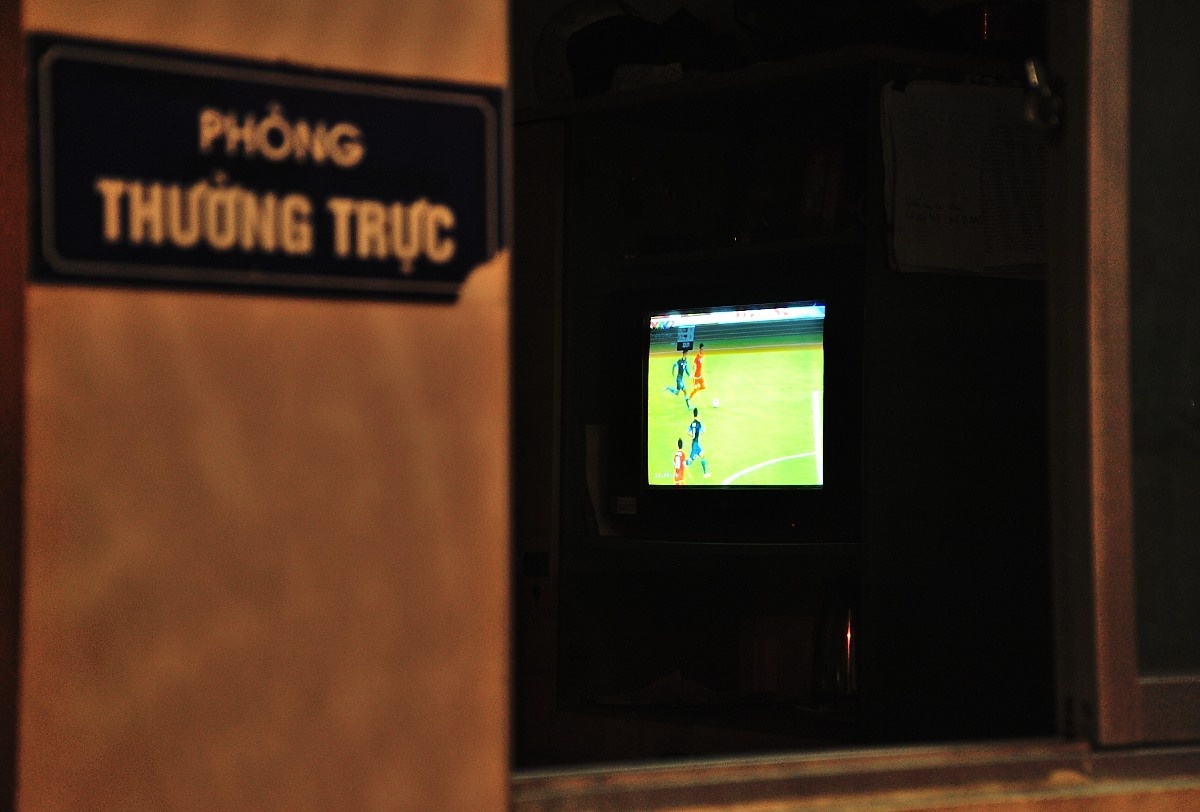 | Một bác bảo vệ trực ca đêm cũng hướng theo từng bước chạy của cầu thủ U23 Việt Nam. |