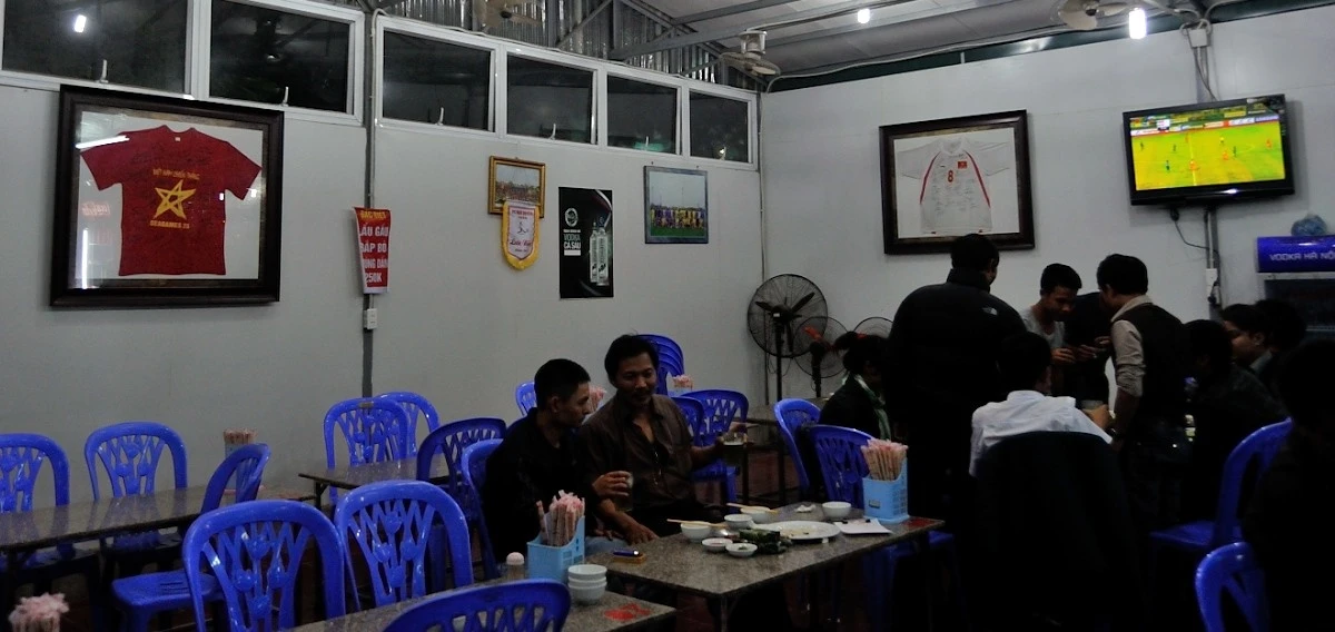 | Chủ quán bia tại khu Đền Lừ - Hà Nội cũng treo áo CĐV Việt Nam khắp quán để thể hiện sự cuồng nhiệt. |