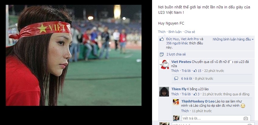 | Chia sẻ "nơi buồn nhất thế giới lại một lần nữa in dấu giày của U23 Việt Nam" nhận được sự đồng cảm. Sau khi kết thúc trận đấu, nhiều người hâm mộ tức giận chia sẻ trên mạng xã hội rằng muốn chuyển qua cổ vũ ĐT bóng đá nữ. |