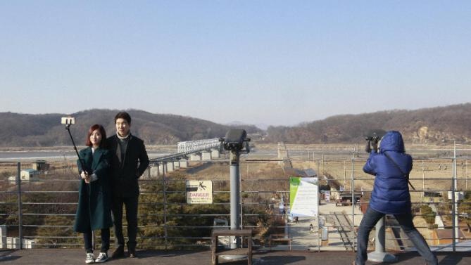 | Người dân Hàn Quốc chụp ảnh trong công viên Imjingak hôm 9/1, gần biên giới chia cắt hai miền Triều Tiên. Ảnh: AP |