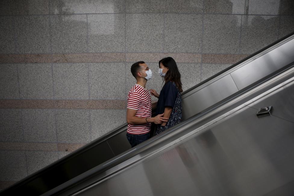 Một cặp tình nhân đeo khẩu trang tại nơi công cộng ở thủ đô Seoul. Dịch MERS, tên gọi tắt của Hội chứng Hô hấp vùng Trung Đông, lây lan mạnh ở Hàn Quốc khiến nhà chức trách và người dân phải thực hiện mọi biện pháp để phòng bệnh cho bản thân và cộng đồng.