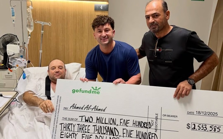 Số tiền này trị giá hơn 2,5 triệu dollar Australia (khoảng 1,65 triệu USD) và đến từ hơn 43.000 người quyên góp, Reuters đưa tin. Một tấm séc được mang đến tận giường bệnh nơi ông Ahmed đang điều trị vết thương do trúng đạn.