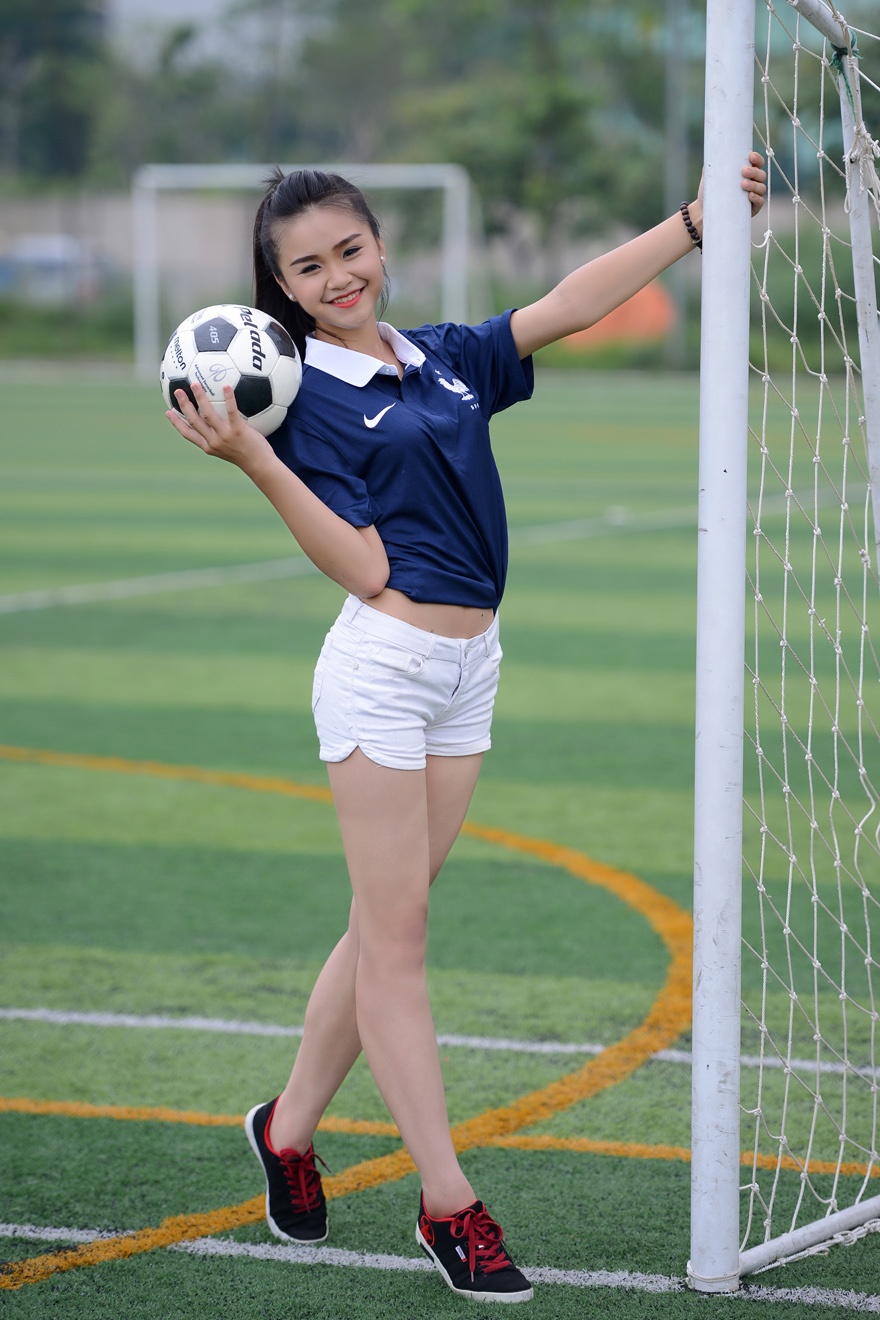Người mẫu xinh đẹp sinh năm 1998 dự đoán tỷ số trận đấu đêm nay sẽ là 3-1 nghiêng về đội tuyển các chú gà trồng Gô Loa. Cô bé yêu thích lãng tử Cabaye và mong chờ Pháp vô địch WC.