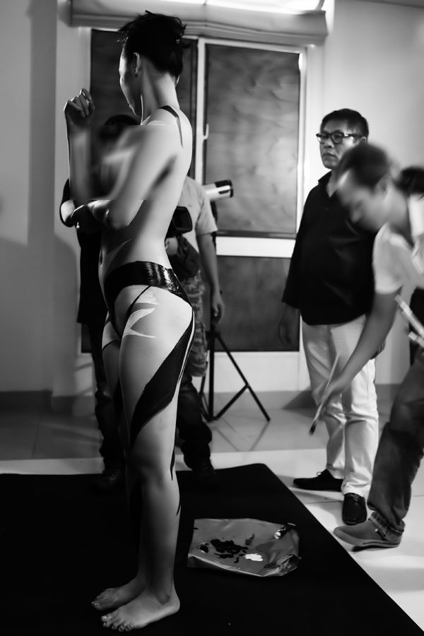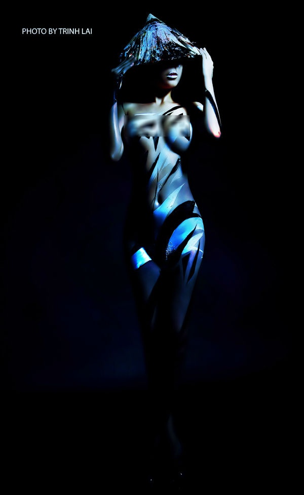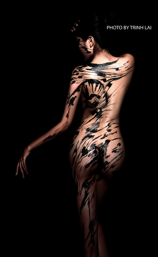 Cô quyết định khỏa thân lần nữa để họa sĩ Ngô Lực, người nổi tiếng qua thực hành nghệ thuật body painting, vẽ lên cơ thể những khối màu, đường nét uyển chuyển.