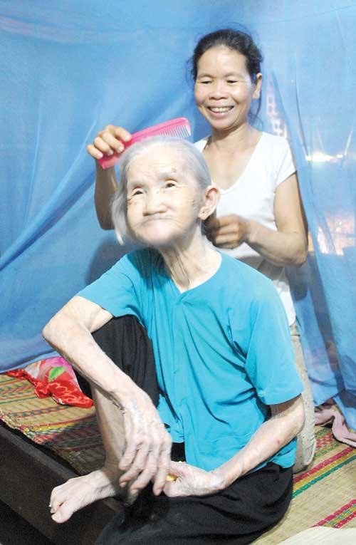 | Sau khi hái xong chị cùng một vài người khác chở đi bán dạo ở phố. Không chỉ vừa làm trụ cột lo chuyện mưu sinh, chuyện học hành cho con, chị còn phải chăm bà mẹ chồng 80 tuổi và cả người chồng bị mất sức lao động. |