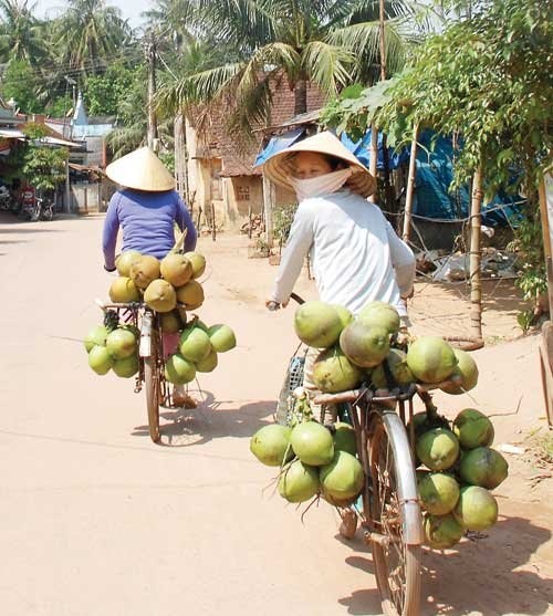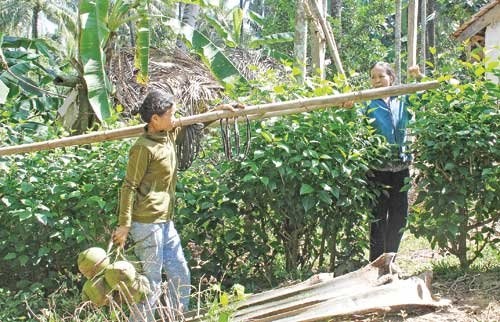 | Có khi không có dừa để hái, chị chuyển sang làm phụ hồ, rồi gần đây lo luôn cả 5 sào ruộng. Ruộng của gia đình chị vốn bị cầm lấy 7 chỉ vàng khi hai con lần lượt vào đại học (con trai đầu Nguyễn Văn Thuận đã tốt nghiệp ĐH Nông lâm, còn con gái Nguyễn Thị Tiện đang là sinh viên ĐH Kinh tế TP HCM). |