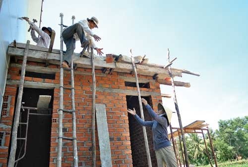| Những lúc không hái dừa, chị Thơm đi làm phụ hồ. |