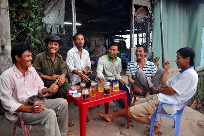 | Mặt trời hé lên, cũng đến lúc ngư dân nghỉ ngơi với ly trà nóng và tách cà phê khoe thành quả lau sau một đêm bủa lưới bắt cá. |