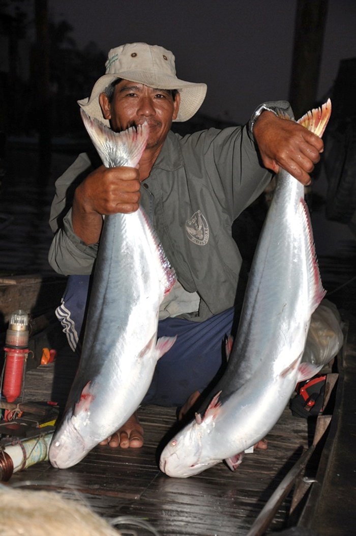 Trên dòng sông Hậu, đoạn có nhiều nhánh sông nhỏ như Sông Vàm Nao giáp ranh giữa huyện Phú Tân và Chợ Mới và khu vực huyện Châu Thành, thuộc tỉnh An Giang, cứ chiều tối là ghe xuồng tập trung đi đánh cá. Năm nay mới đầu mùa, nhưng nhiều thuyền đã trúng đậm loài cá này.