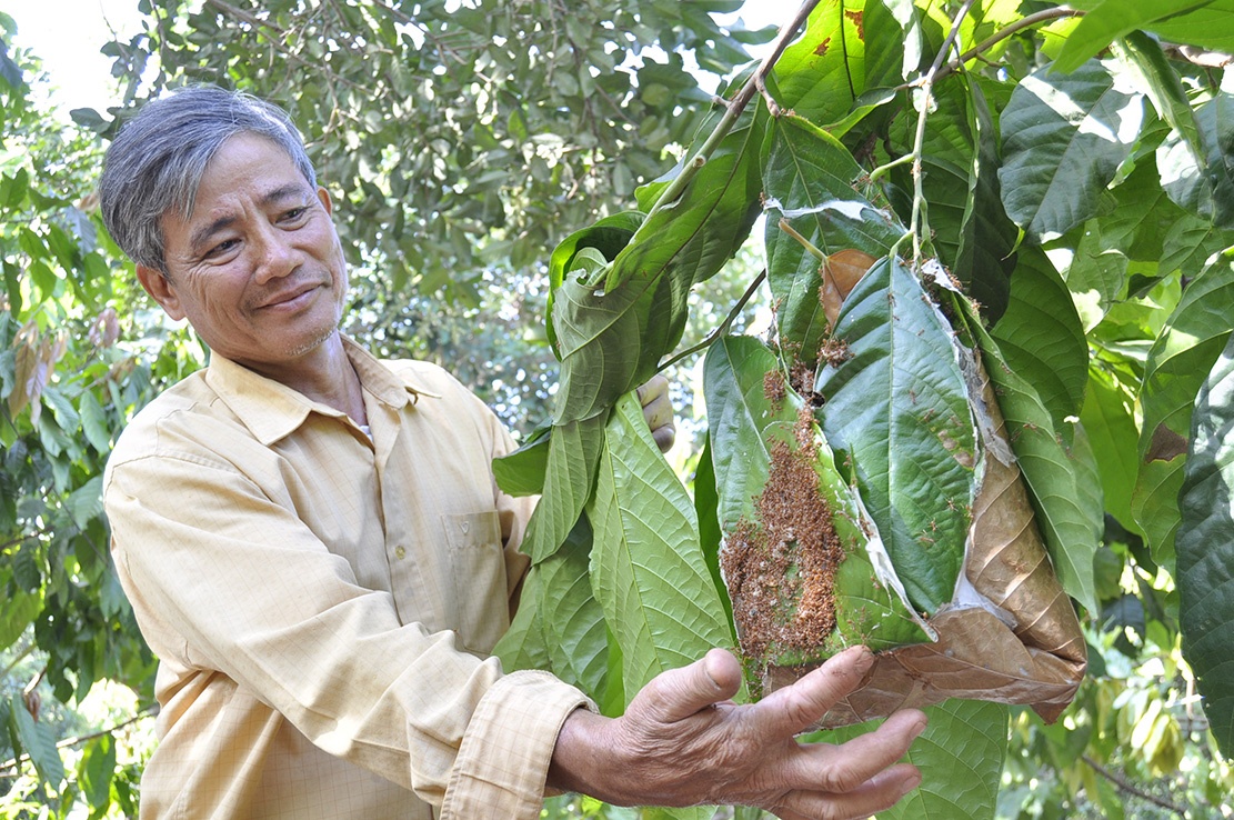 | Nhờ kiến bắt sâu, mỗi năm ông Le tiết kiệm được 40 triệu tiền mua thuốc trừ sâu. Ảnh: Ngọc An |