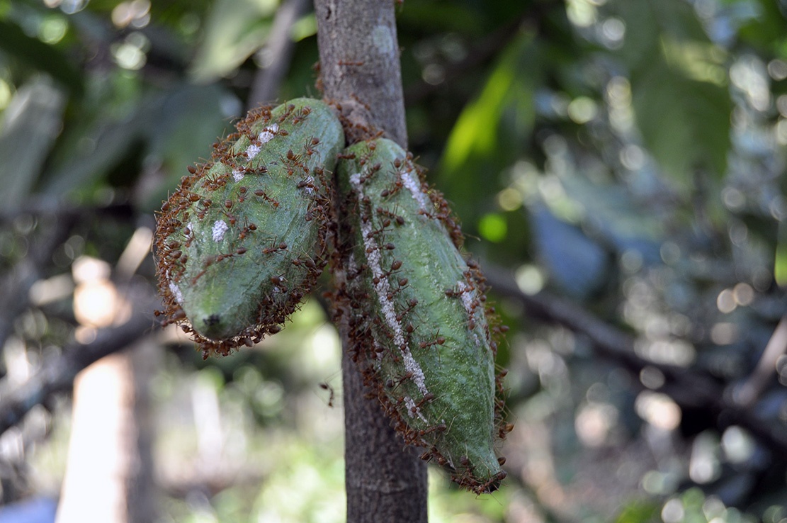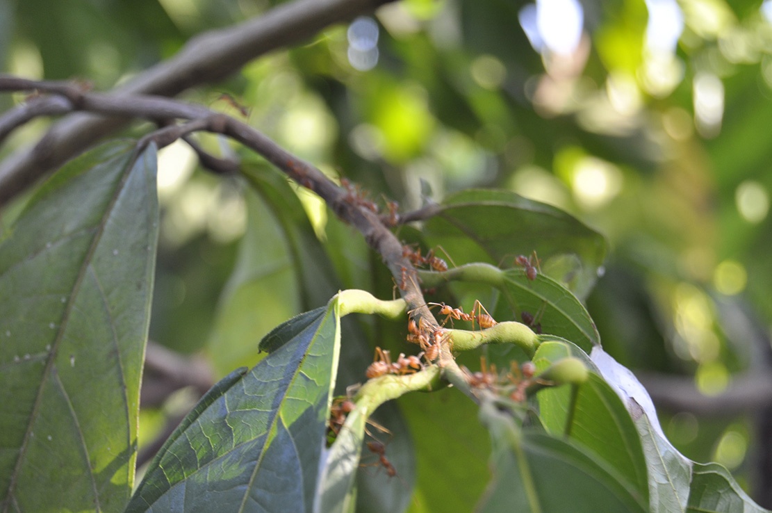 | Kiến vàng vây quanh quả để tìm sâu bọ. Ảnh: Ngọc An |